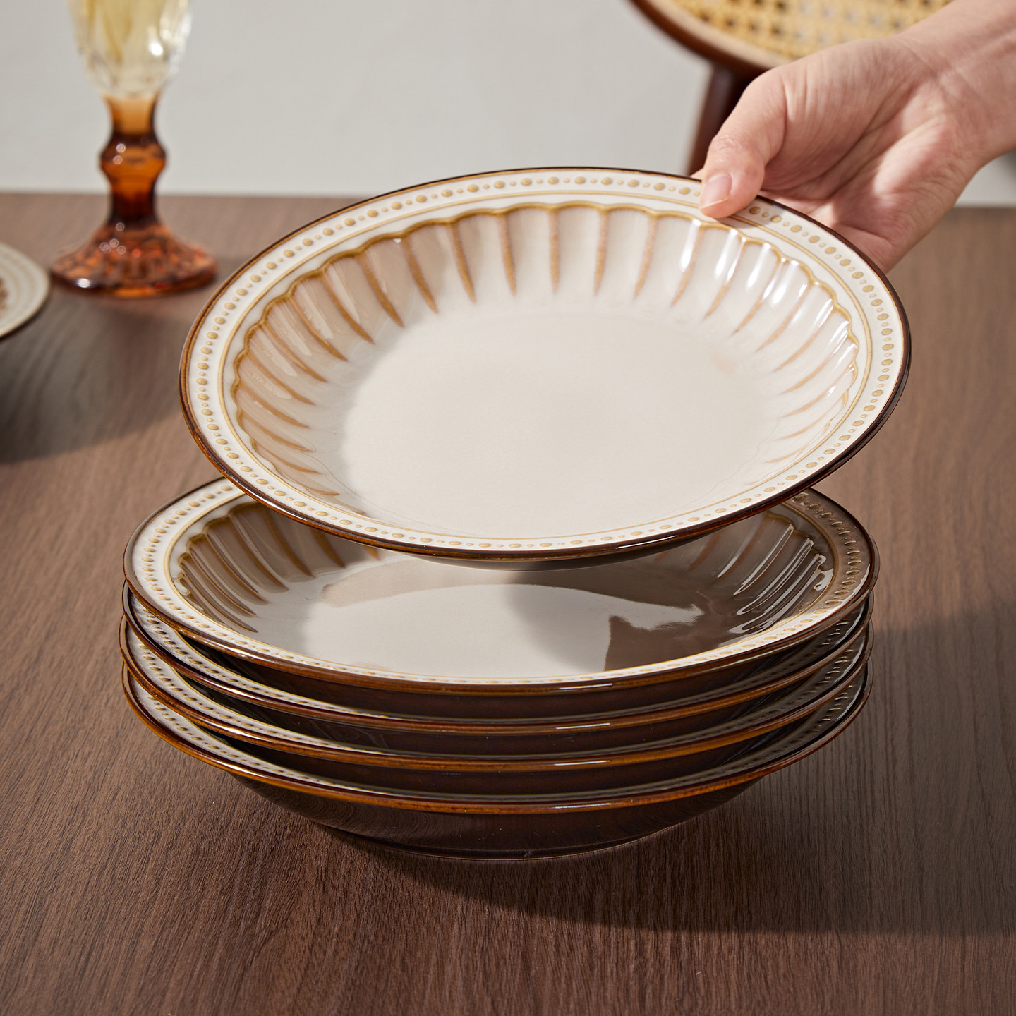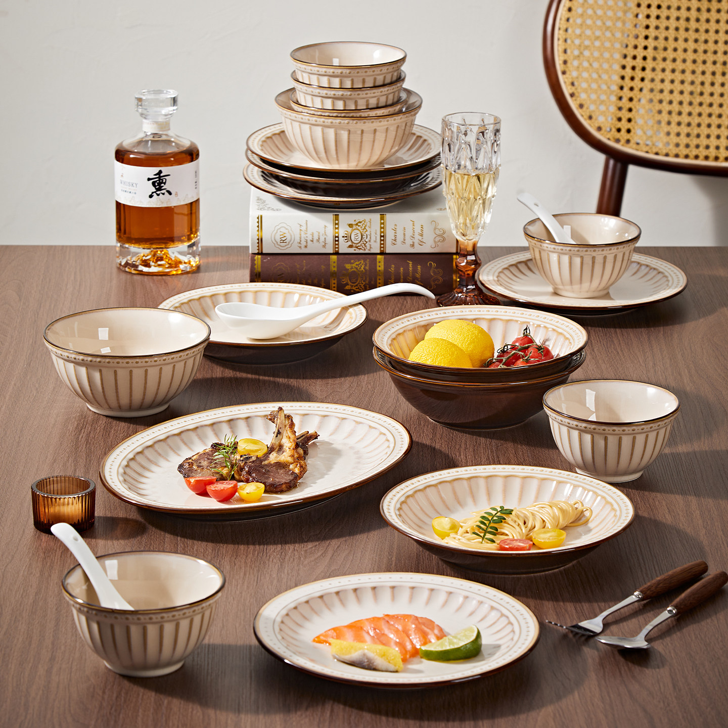 餐具套装2026新款复古陶瓷碗盘家用漂亮的碗碟釉下彩饭碗高端碗具