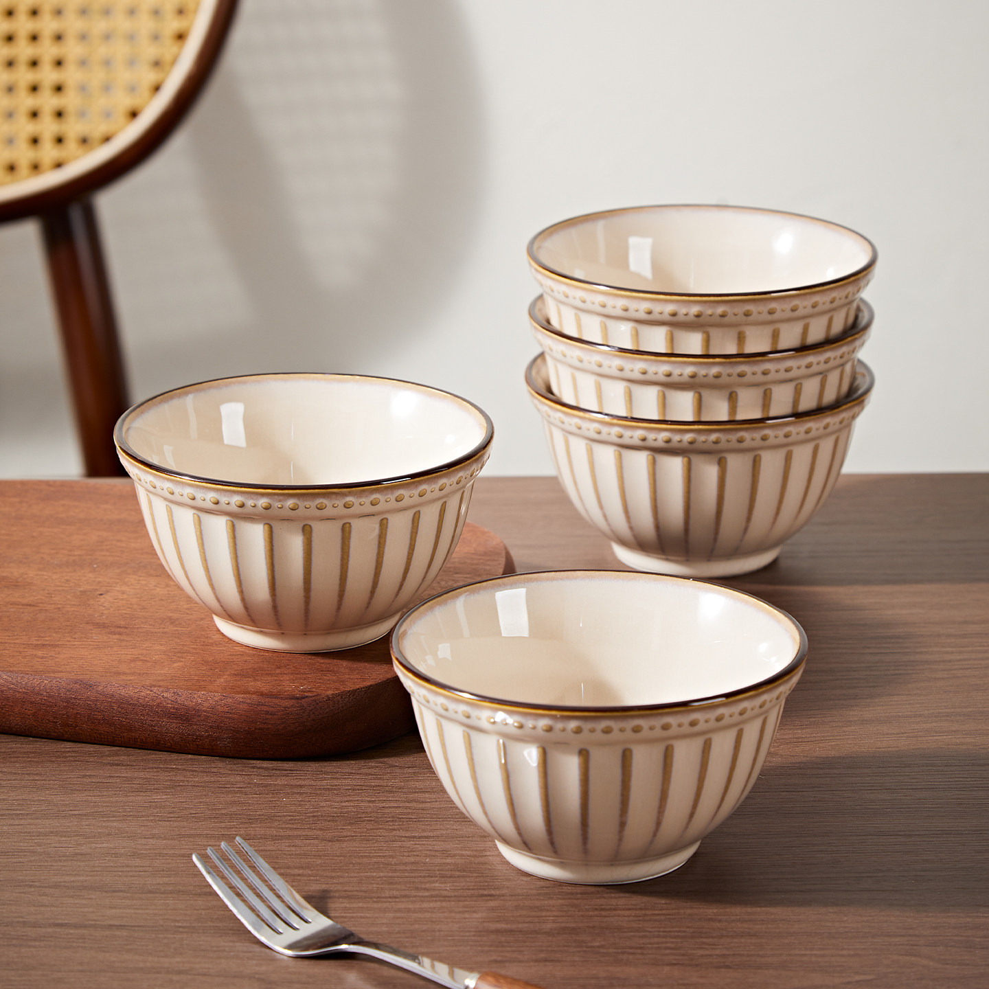 奶油风陶瓷碗家用卡通菜盘子可爱米饭碗汤碗釉下彩儿童餐具耐高温