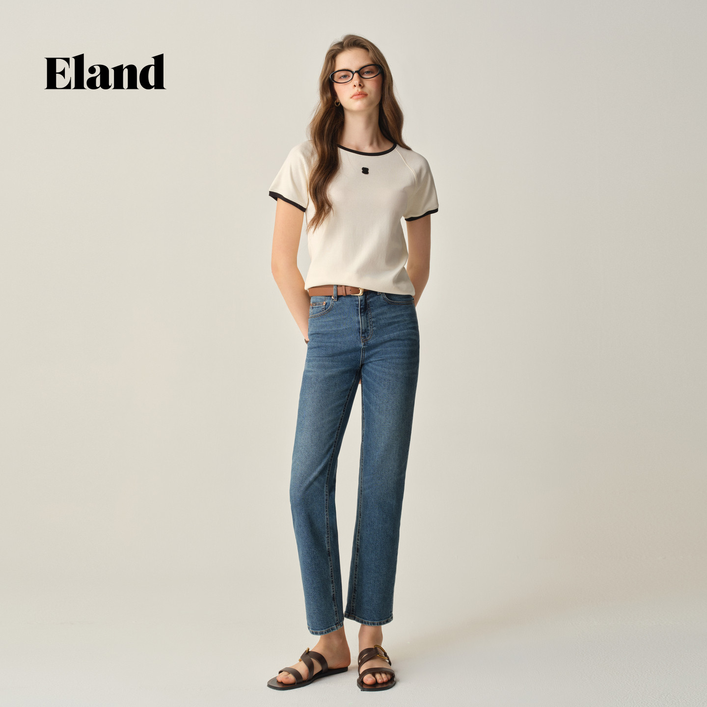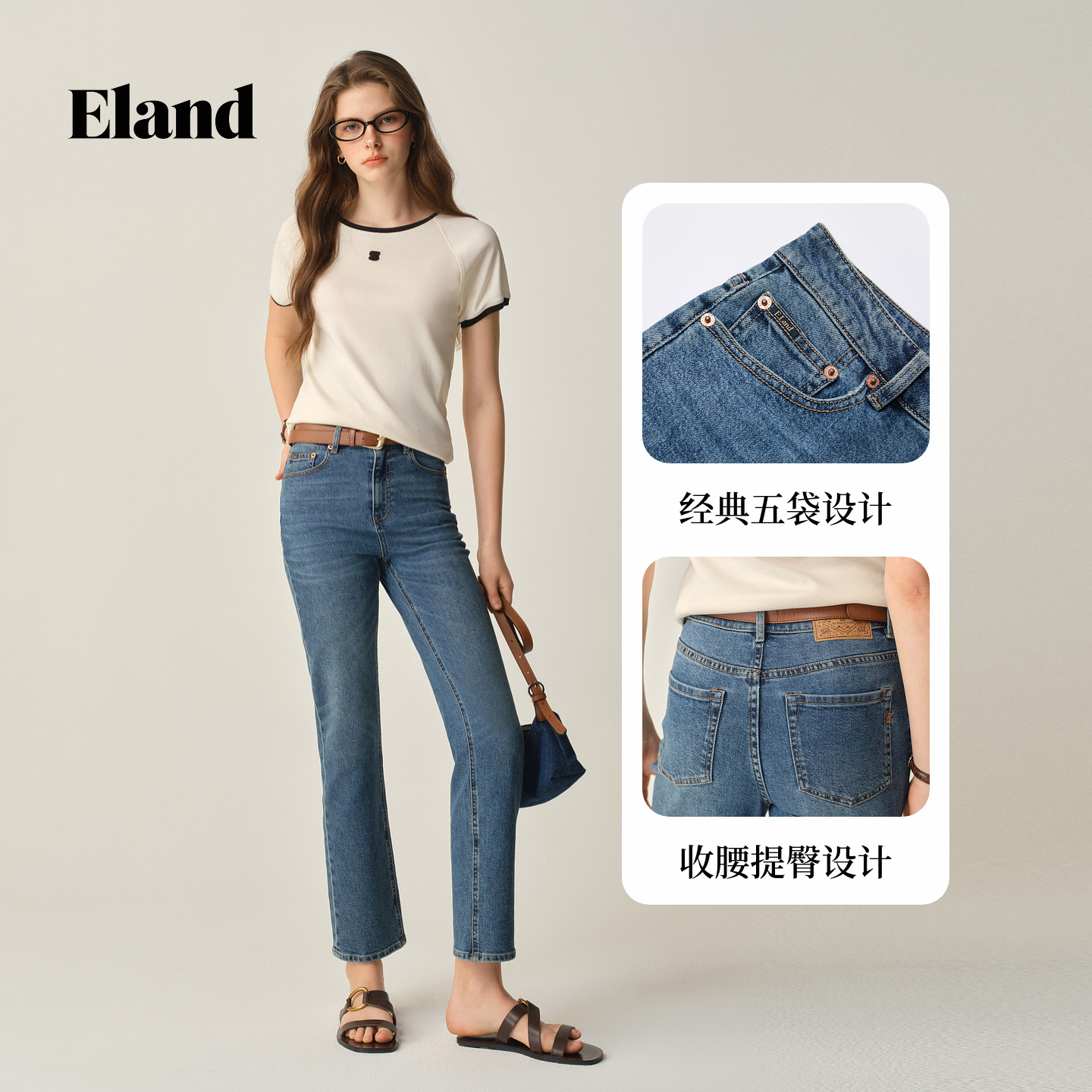 【莱赛尔】Eland衣恋牛仔裤女2025九分直筒裤通勤长裤子秋季新款