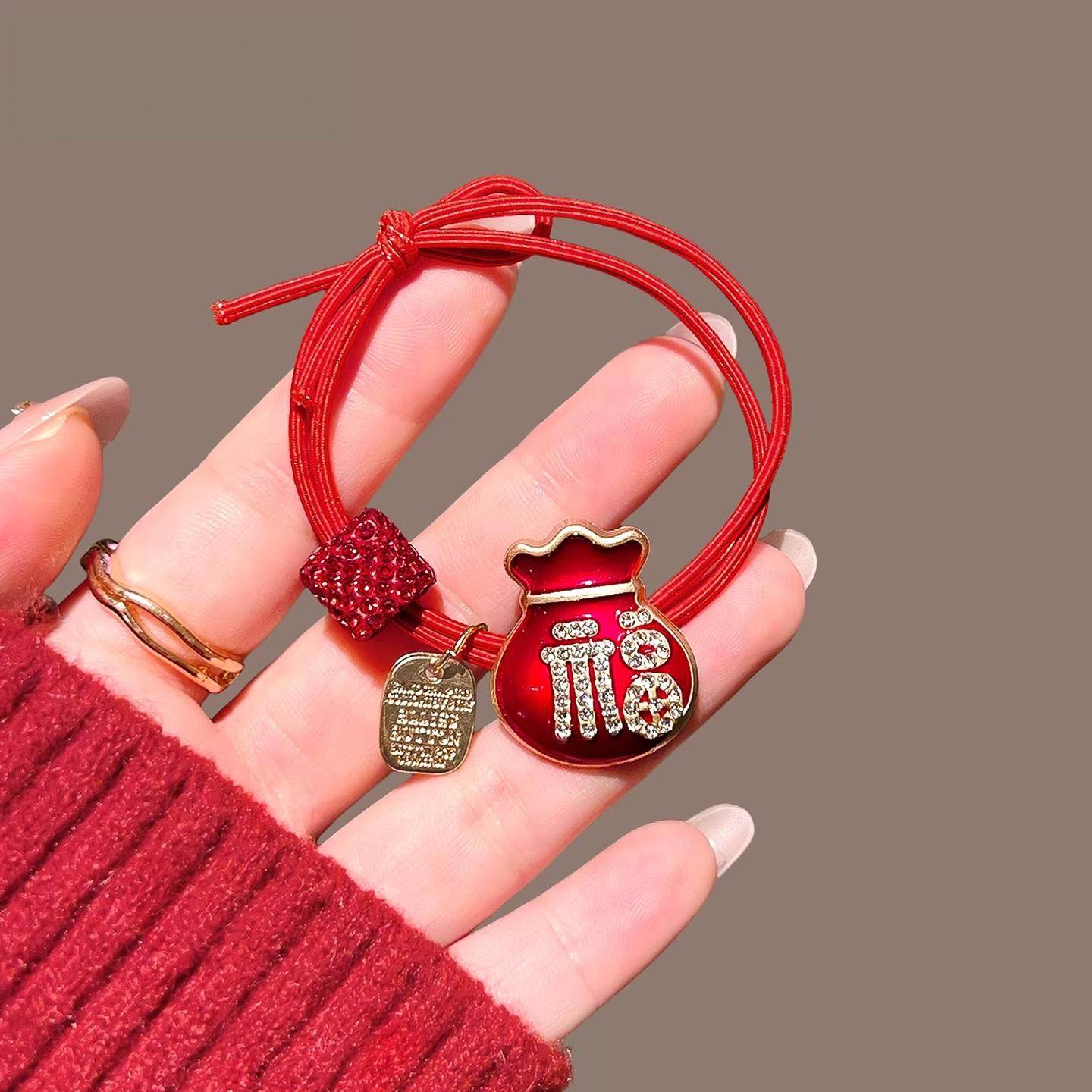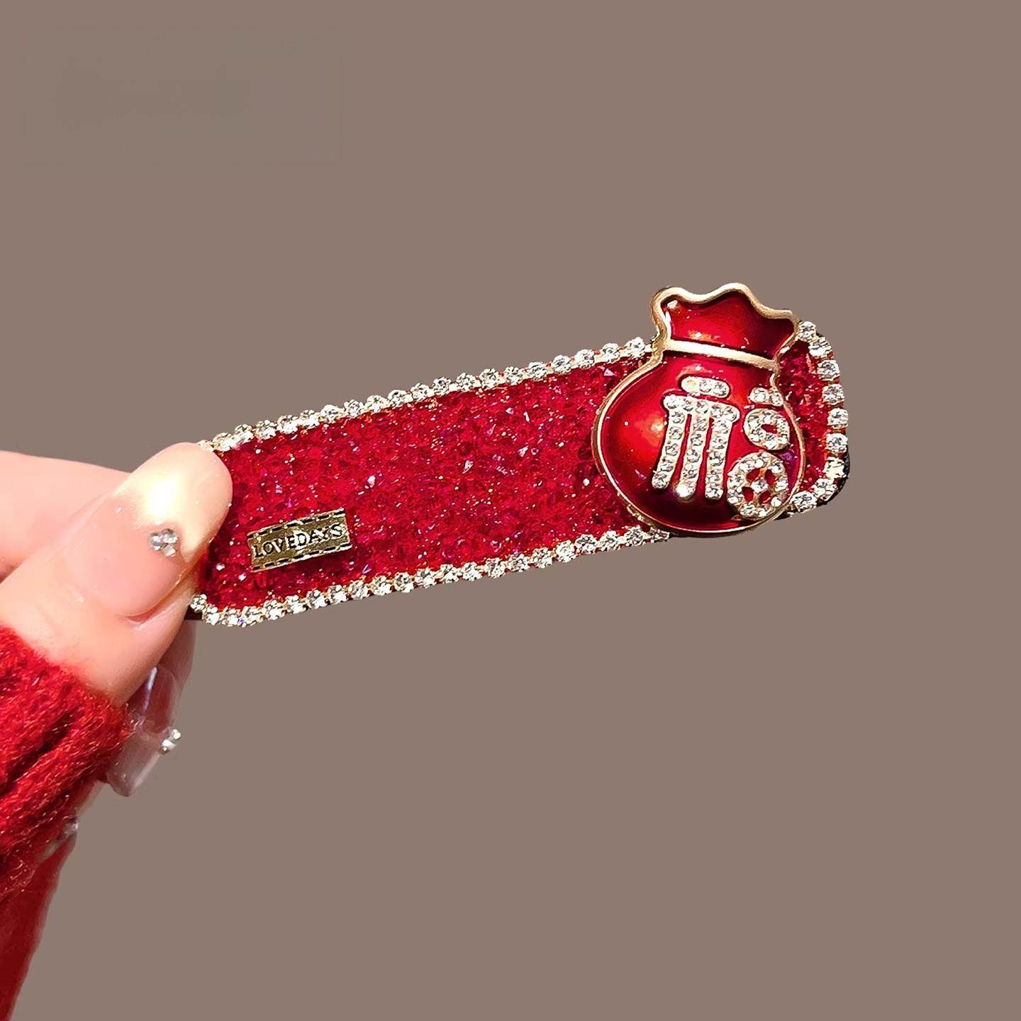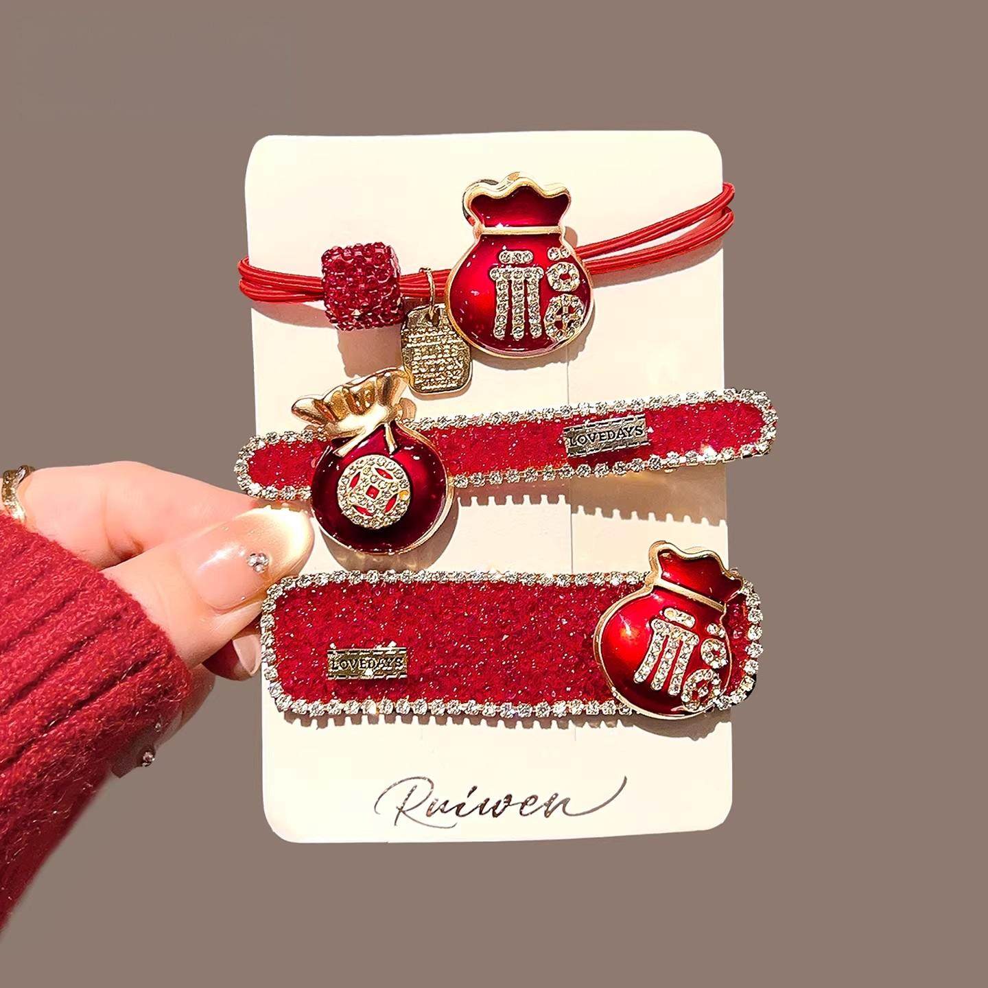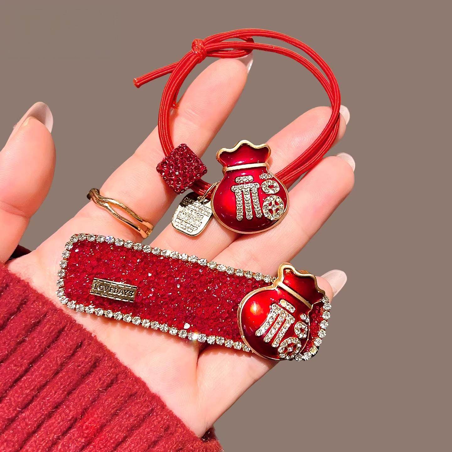 马年福袋发饰本命年发夹红色头绳刘海侧边一字夹子喜庆新年发卡