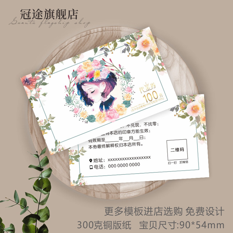代金券订制体验卡定制优惠卷体验卷卡片定做设计现金抵用卷门票订做美容院拓客名片印制广告宣传美甲美睫