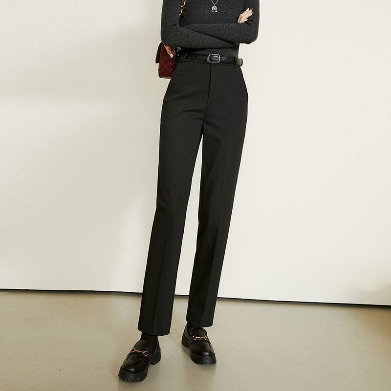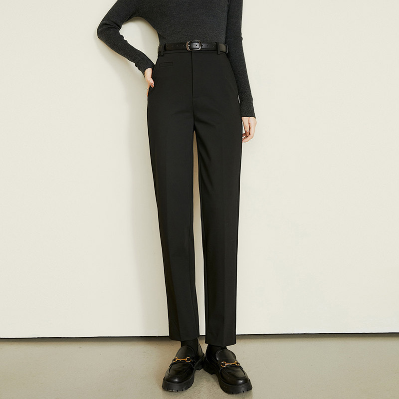 晚白2025年冬新款时尚休闲裤子薄绒弹力通勤小脚西装休闲裤女