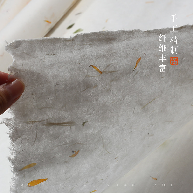 花草云龙皮纸半熟清水构皮茶叶长纤维毛边书法写意四六八尺皮宣纸