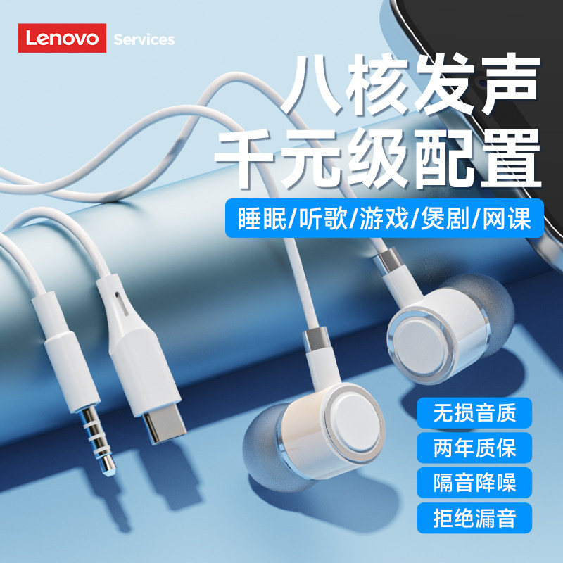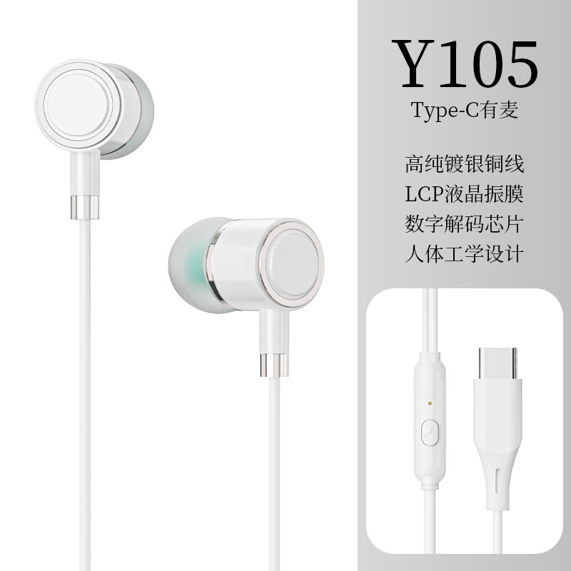联想Y105入耳式有线耳机Type-C高音质线控游戏K歌电竞小耳塞圆孔