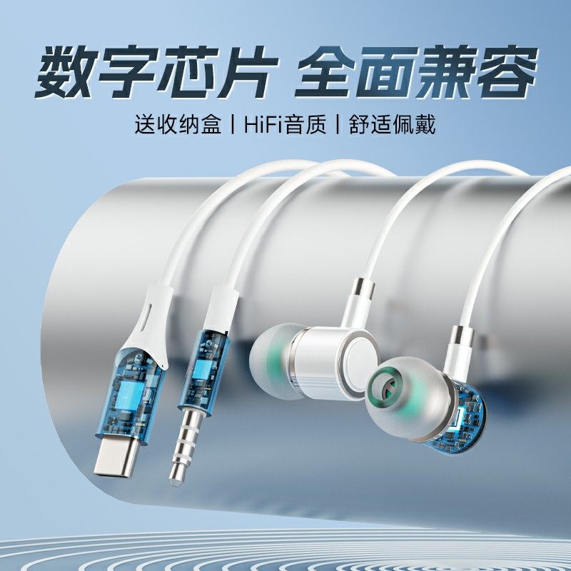 2025新款有线耳机半入耳式高音质type-c接口游戏听歌降噪手机圆口