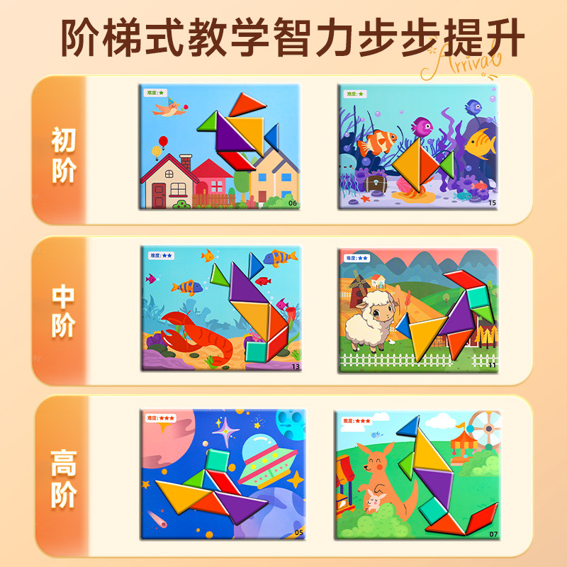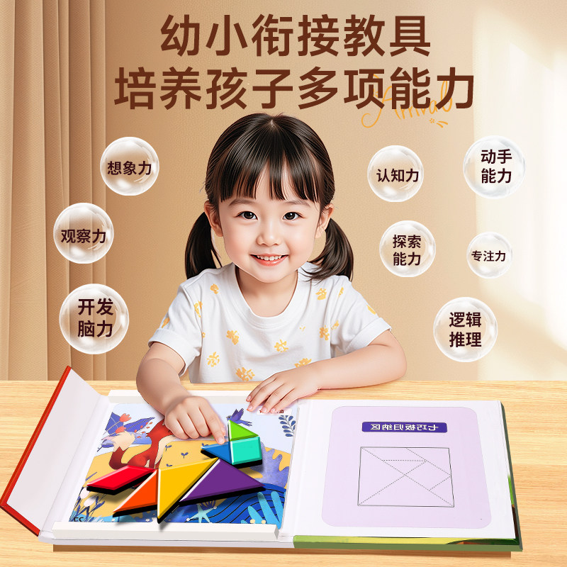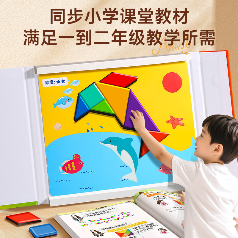 磁性七巧板小学生专用二年级磁力磁吸拼图一年级教具儿童智力玩具
