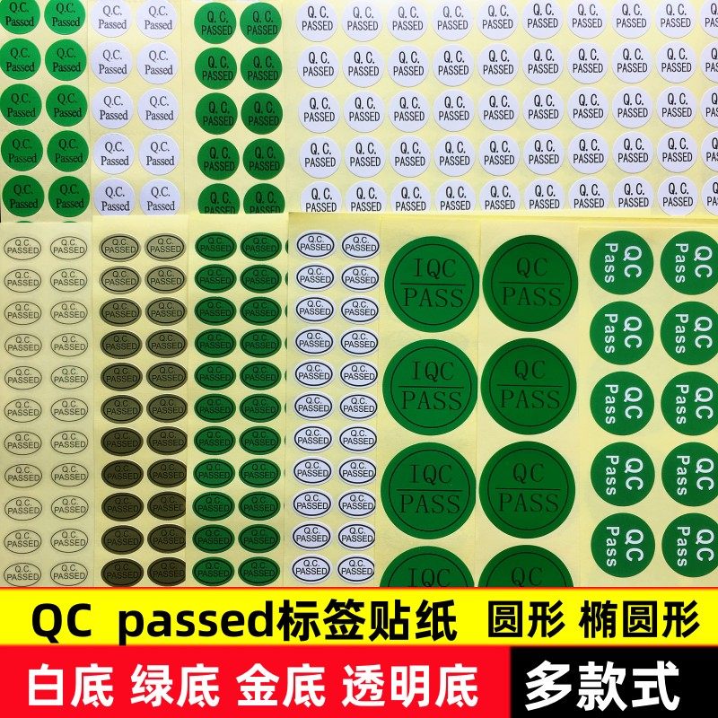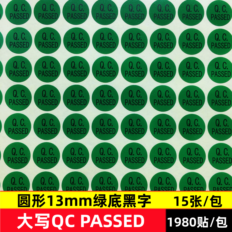 QC绿底 PASSED标签 QCPASS质检不干胶商标pass贴纸产品检验合格