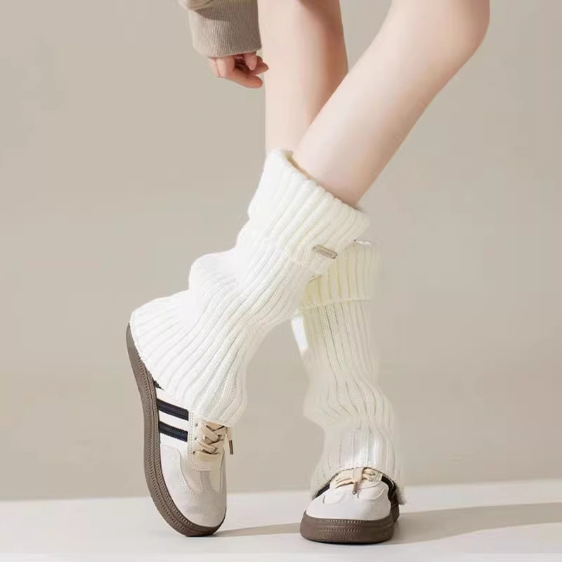 辣妹针织袜套女秋冬季加厚保暖白色腿套配雪地靴堆堆袜冬天小腿袜