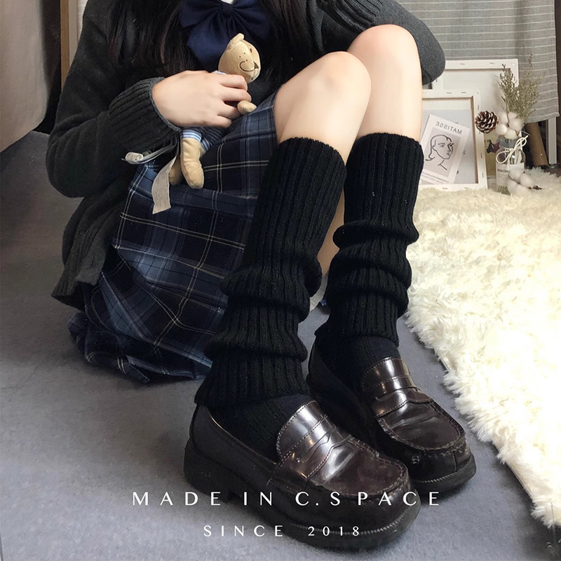 袜套女秋季白色堆堆袜女jk针织中筒袜腿套修饰腿型黑色泡泡袜冬天