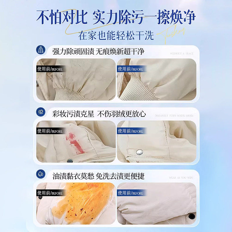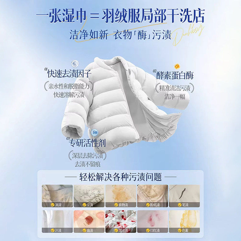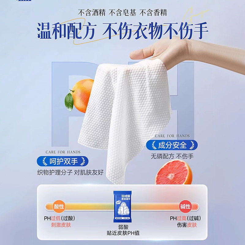 羽绒服清洁湿巾免洗强力去污去渍免水擦衣物便携干洗专用独立包装