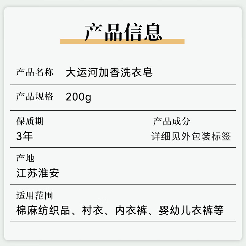 大运河加香洗衣皂200g去污去渍家庭内衣皂老肥皂皂国货老牌内裤