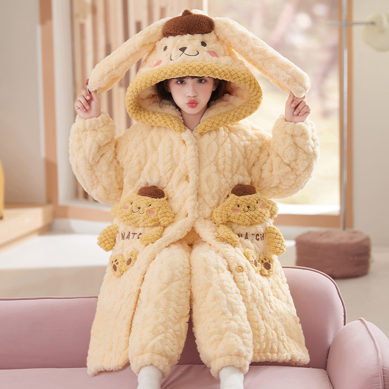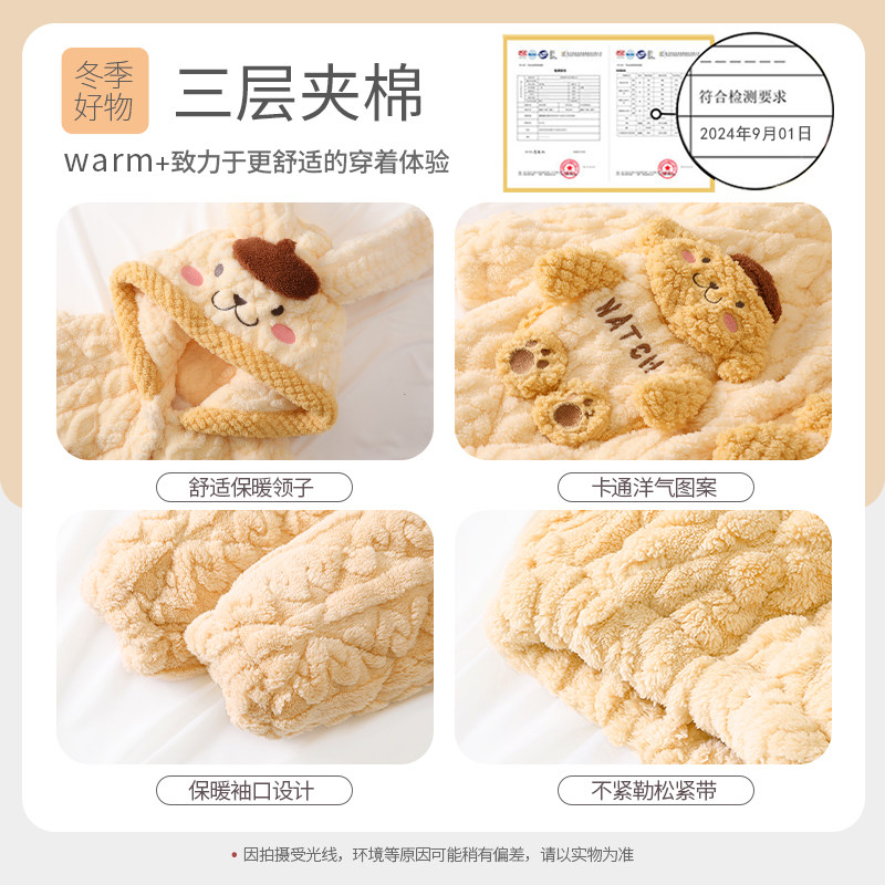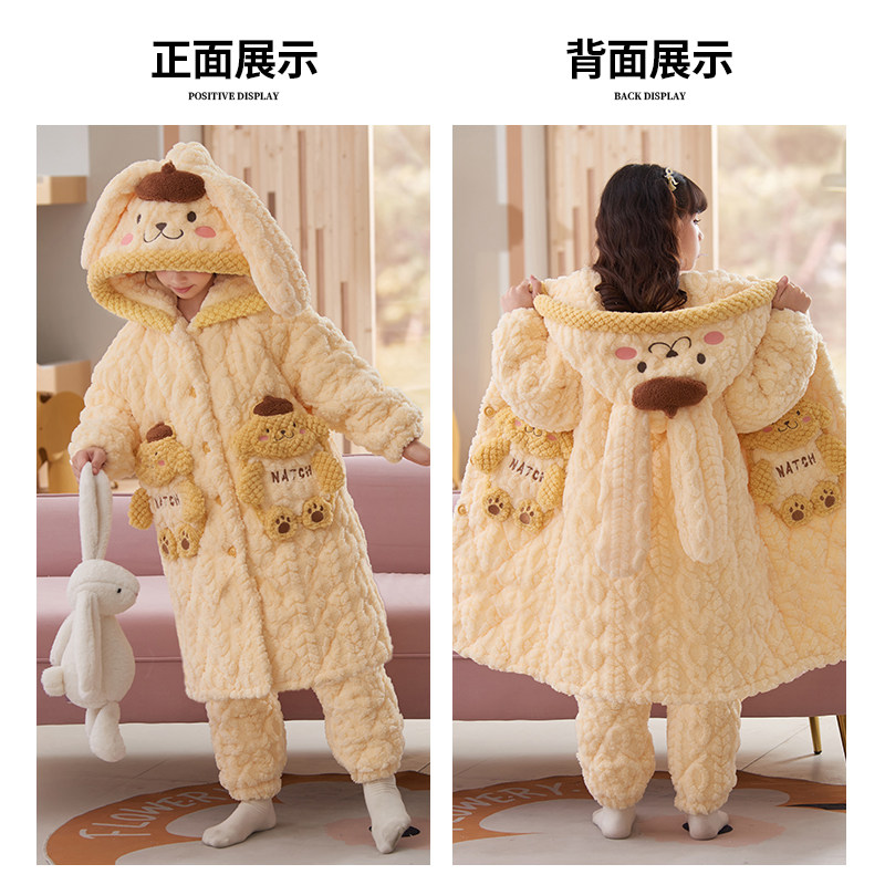 儿童睡衣冬季加绒加厚冬款三层夹棉女童睡袍珊瑚绒女孩浴袍家居服