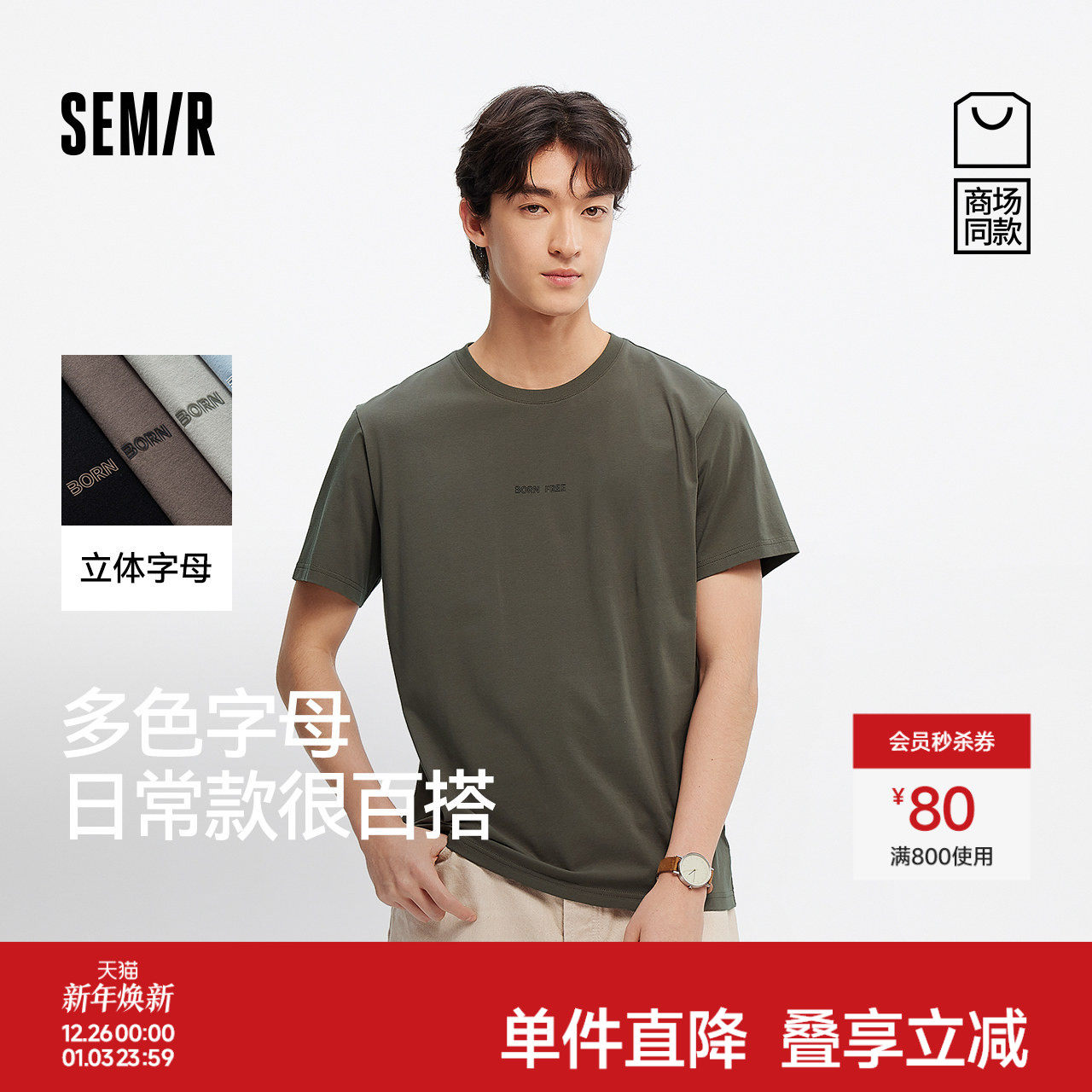 [商场同款]森马短袖T恤男修身百搭2025夏季新款圆领针织上衣印花