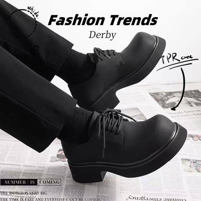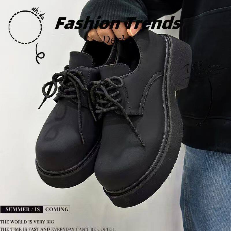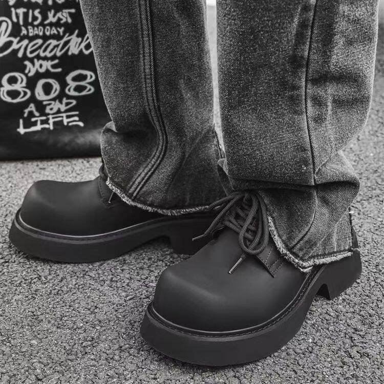 2025春季新款大头德比男鞋厚底休闲皮鞋男士工装鞋潮英伦圆头黑色