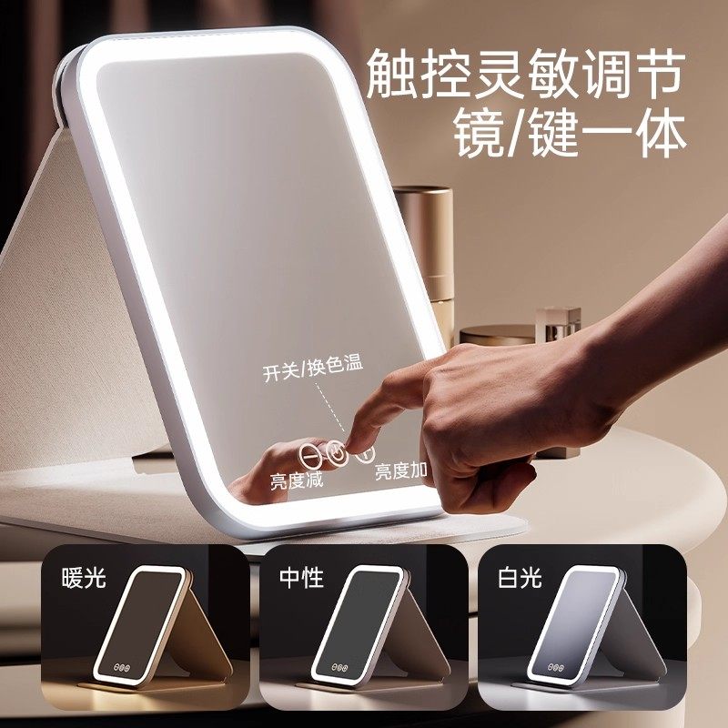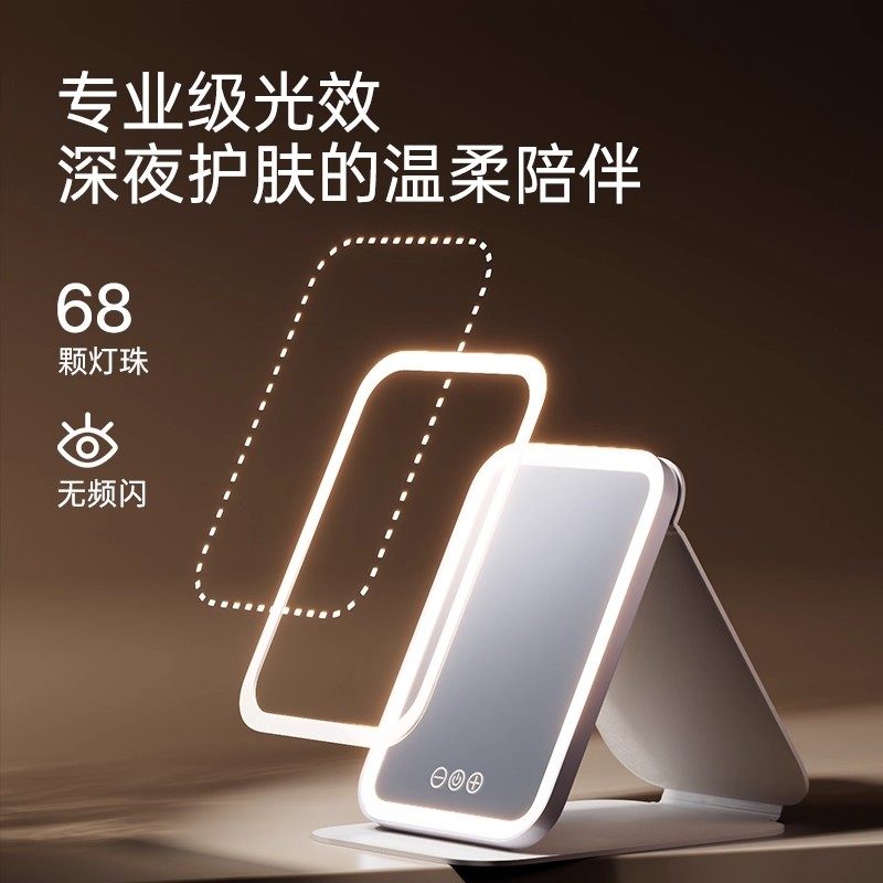 可折叠LED化妆镜便携式梳妆镜带灯大号充电款超长续航桌面美妆镜
