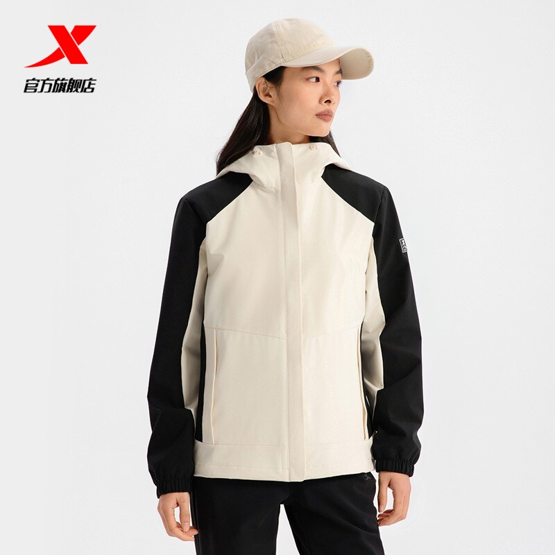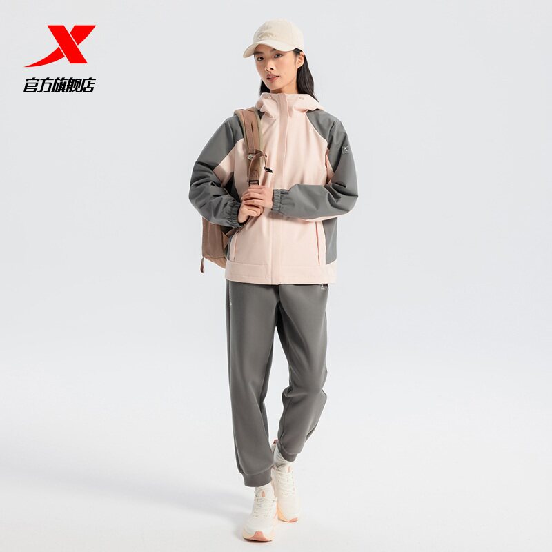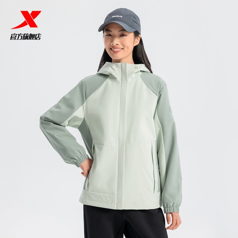 特步外套女款2025秋季新款连帽开衫户外运动双层风衣975128160057