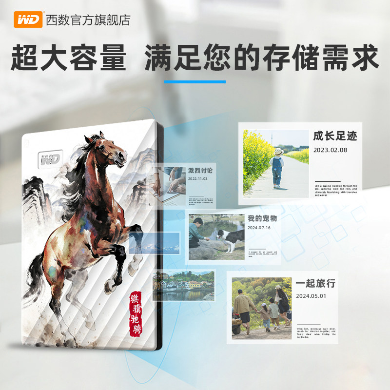 WD西部数据马年移动硬盘2tb高速外接机械手机存储电脑USB3.0彩绘