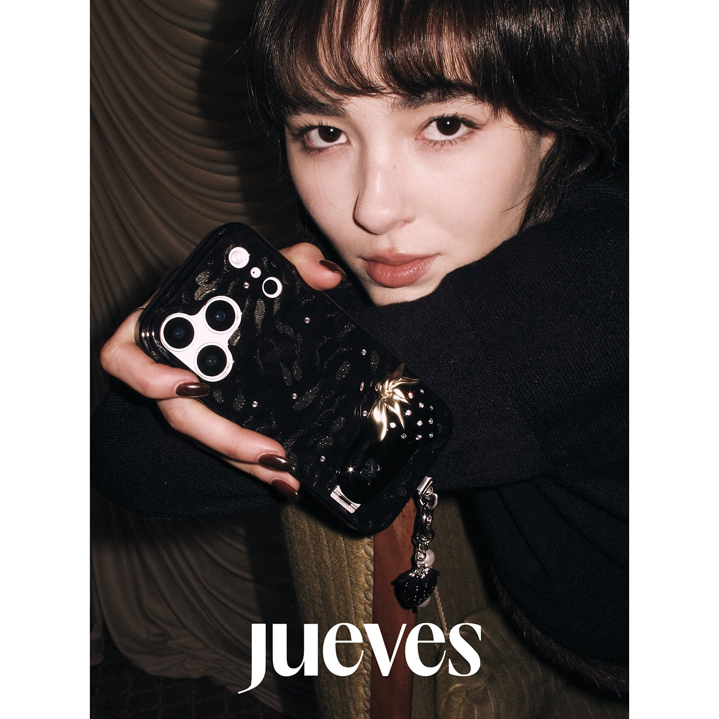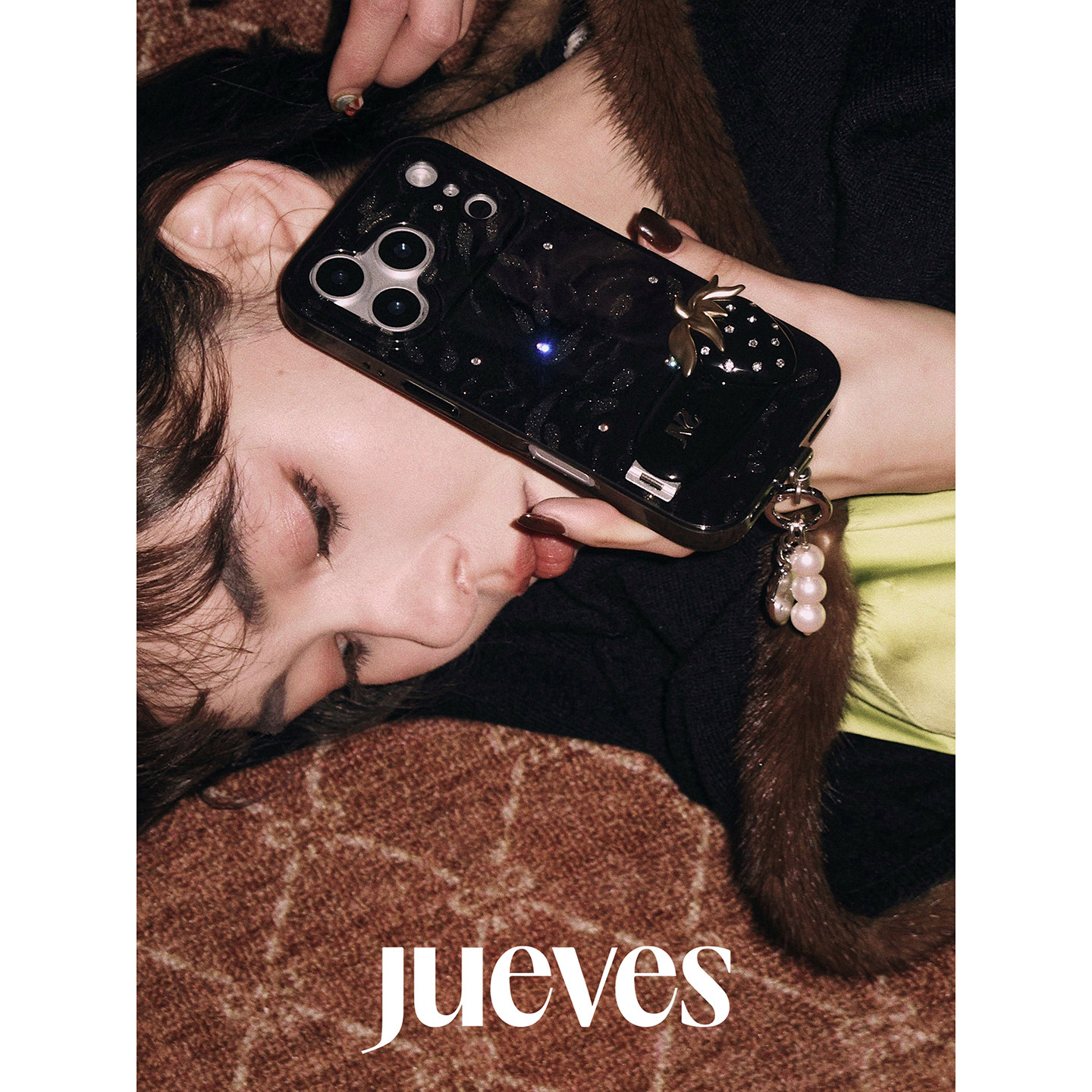 JUEVES星期四黑草莓闪粉钻石发夹壳 适用于苹果iPhone17ProMax/17Pro/16ProMax/15pm/华为Pura70手机壳 小众