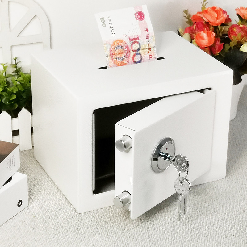 全钢儿童储蓄罐投币保险箱微小型机械钥匙锁家用办公迷你保管箱