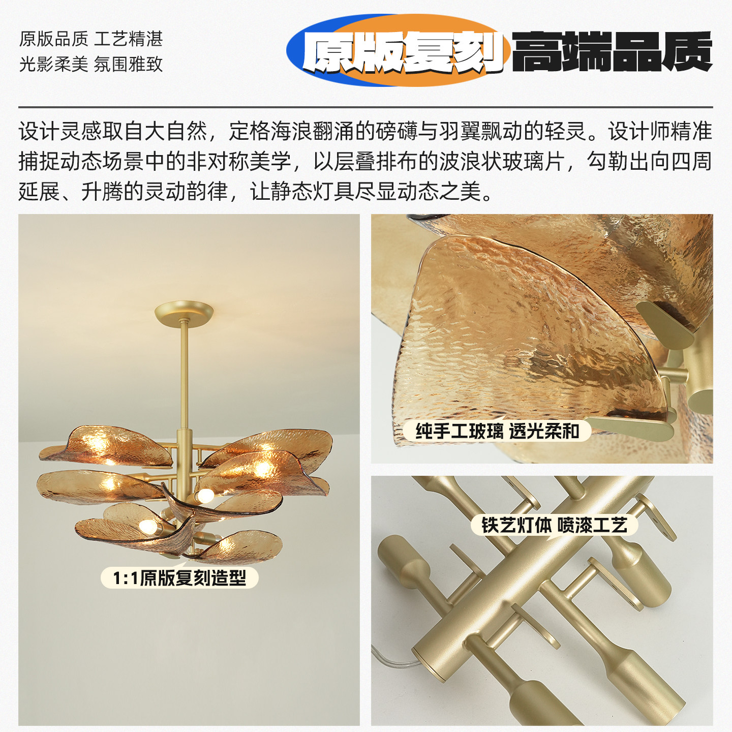 法式中古吊灯餐厅客厅个性卧室复古民宿艺术新款手工玻璃花瓣灯具