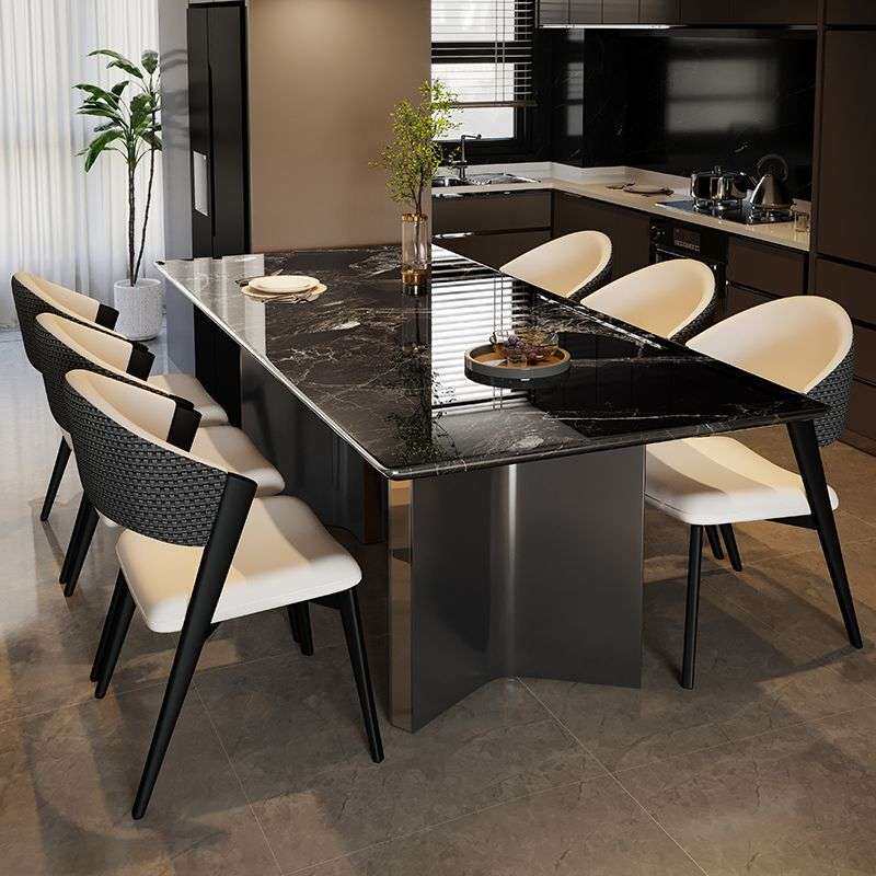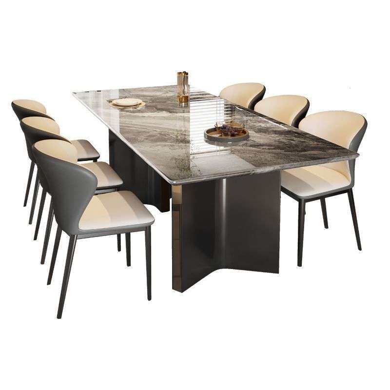 家用餐厅微晶石大理石长方形吃饭桌轻奢天然超晶石餐桌椅组合高端
