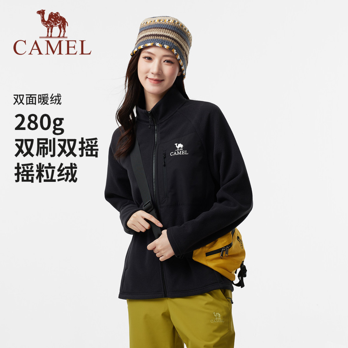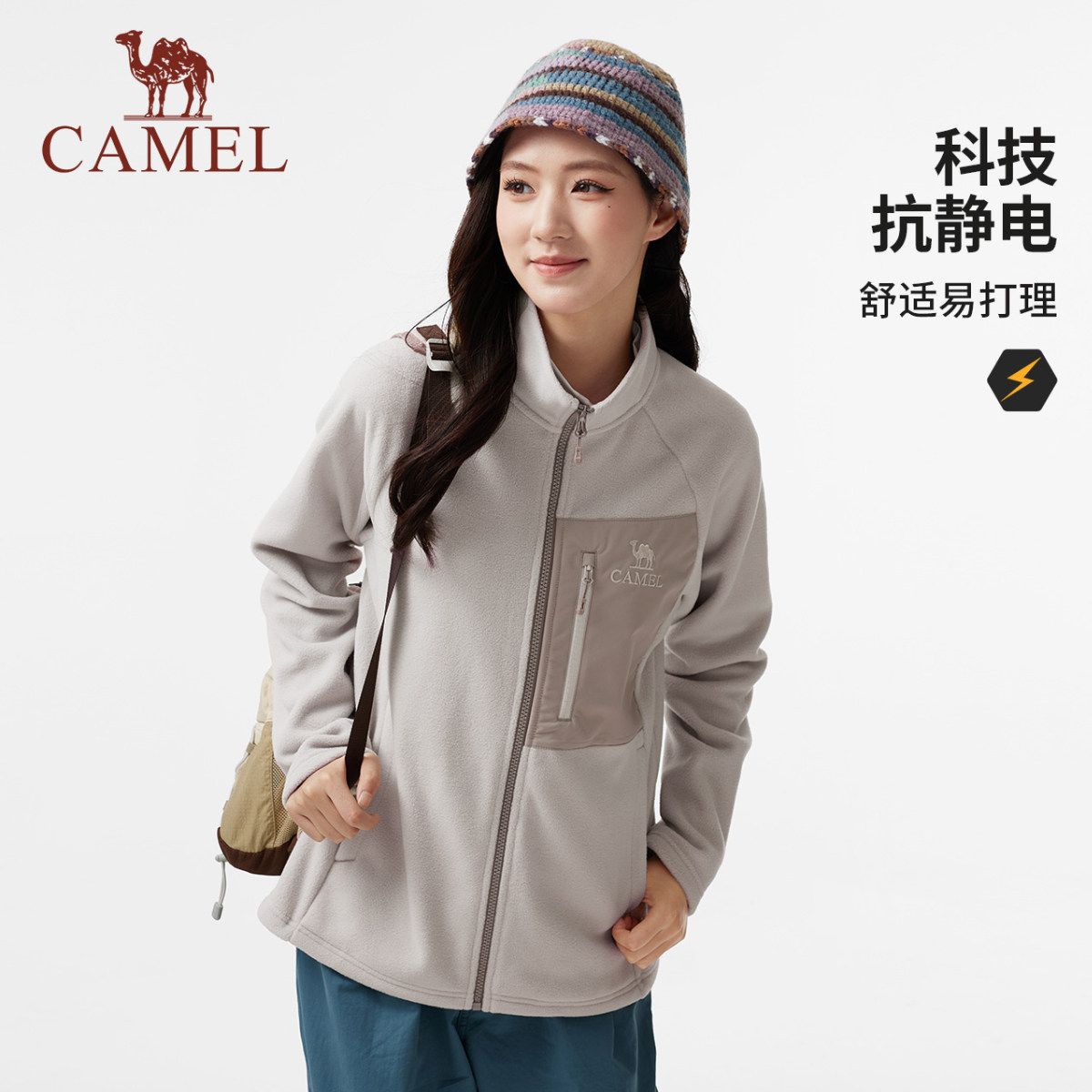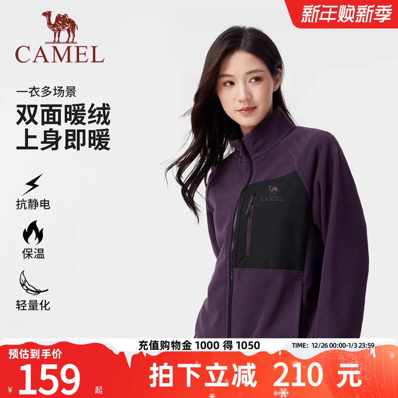 骆驼女装立领抓绒外套2025秋季新款抗静电加绒保暖休闲摇粒绒外套