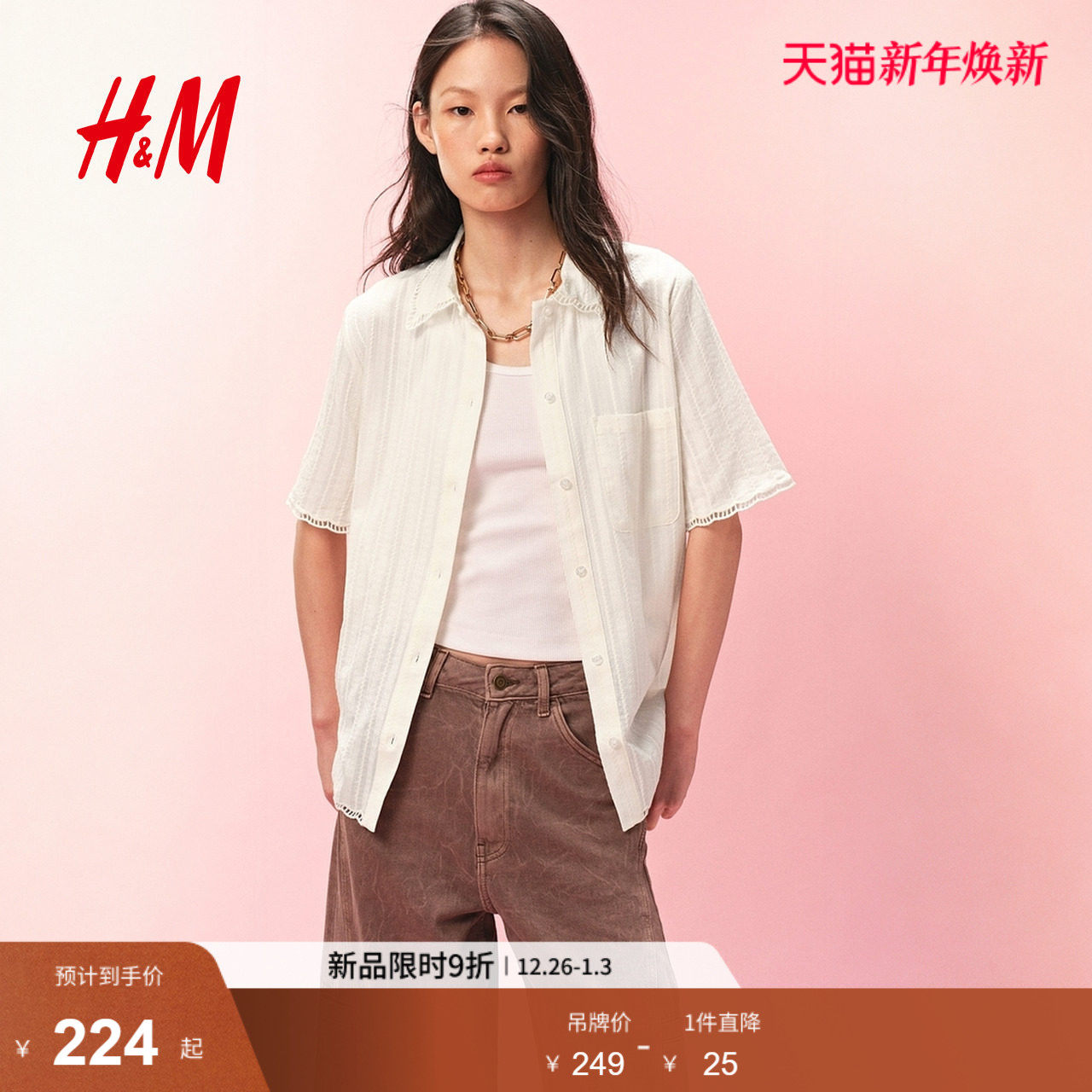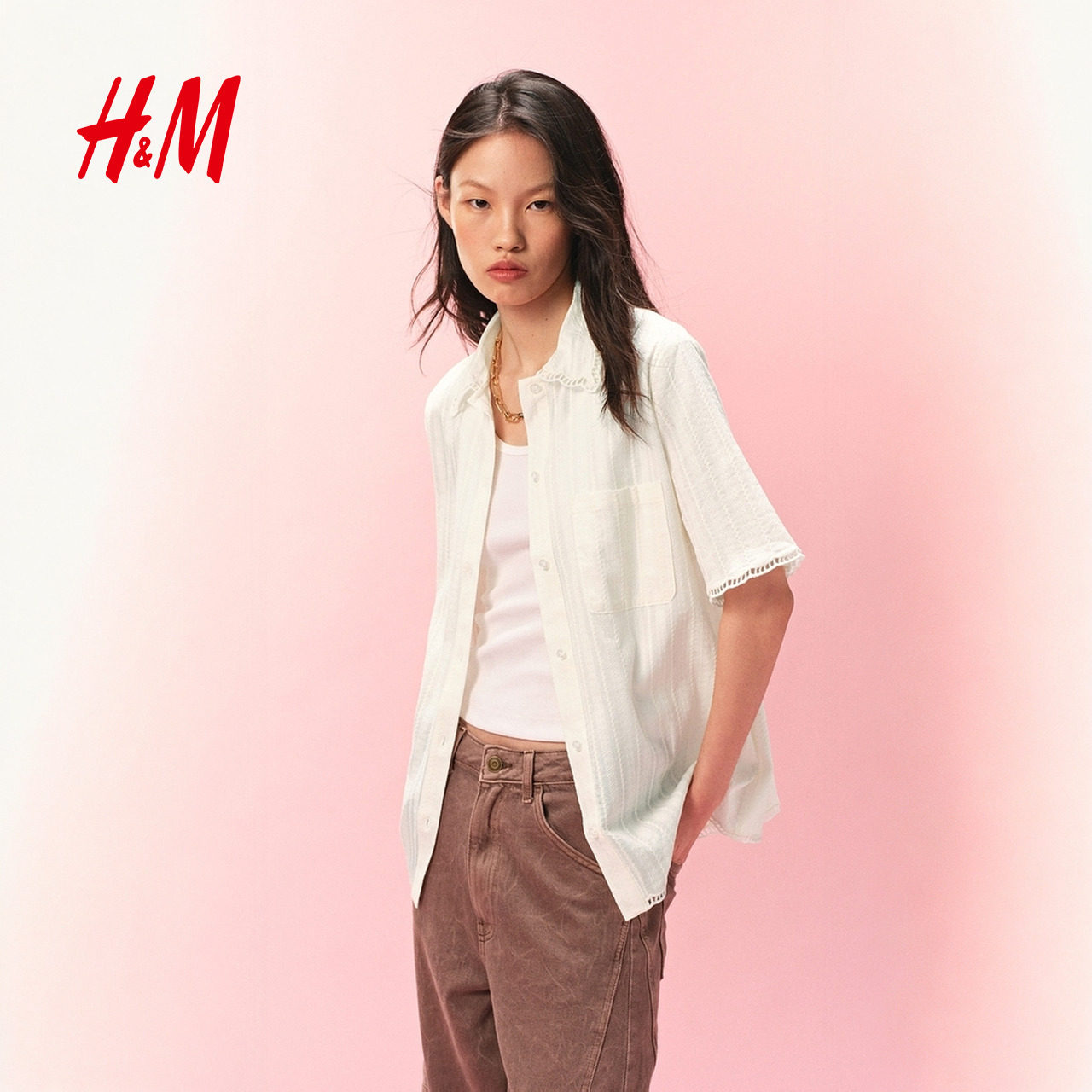 HM女装衬衫2025年冬季新款时尚气质潮流柔软简约棉质衬衫1310353