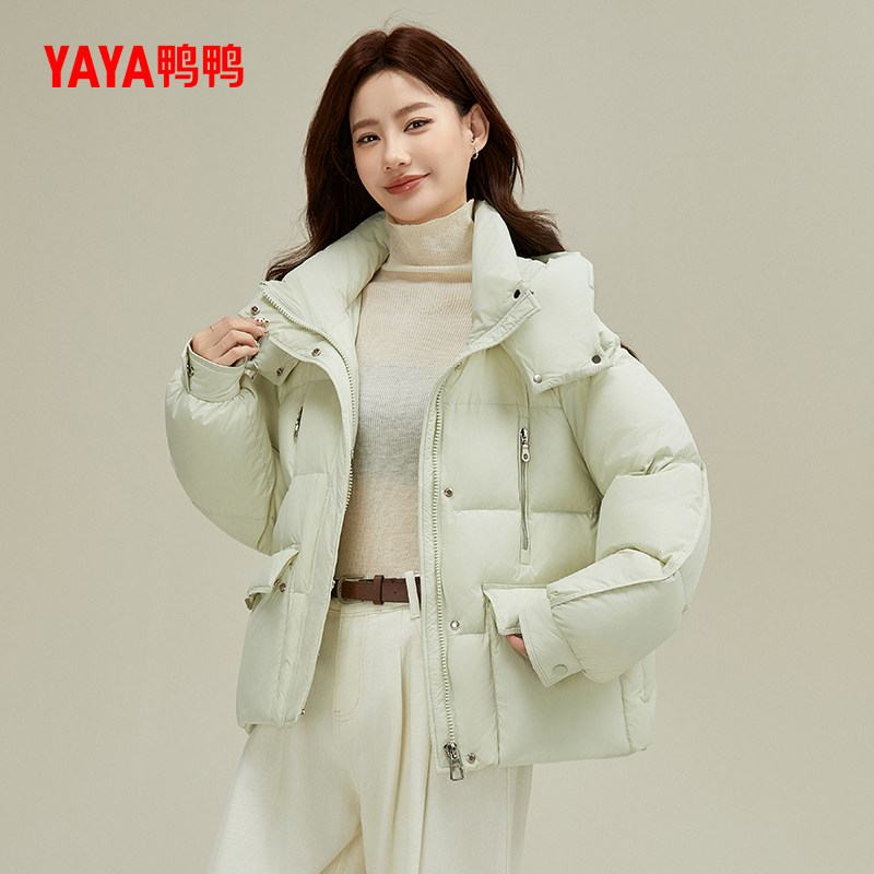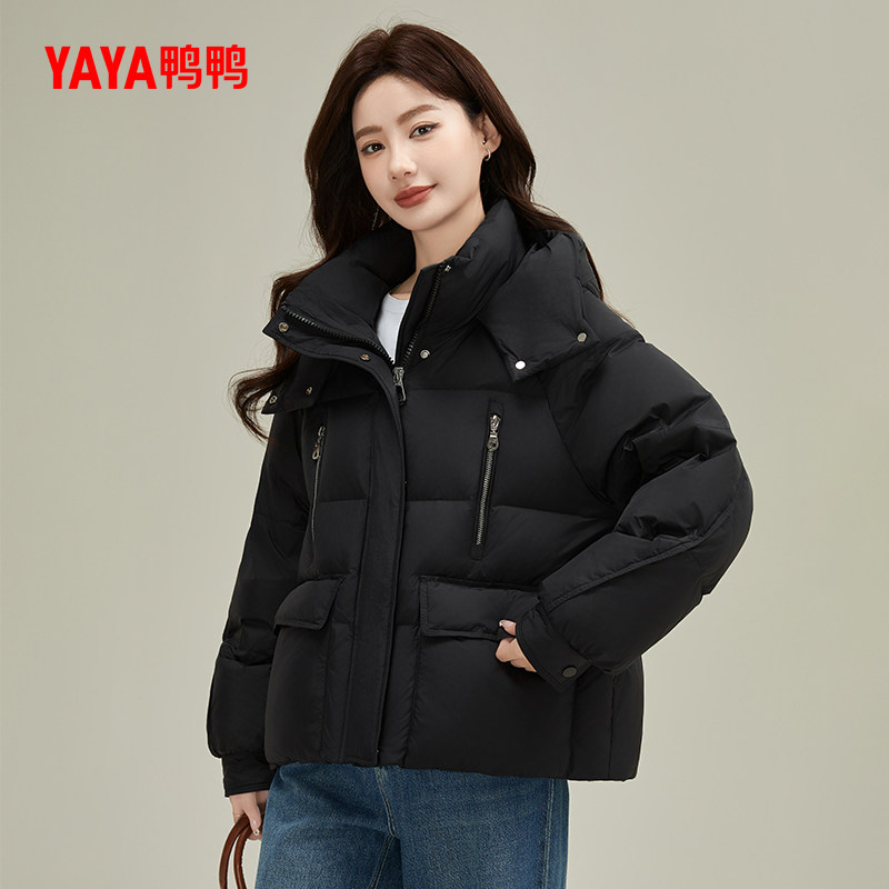 【鞠婧祎同款】鸭鸭2025年冬新款百搭短款女士纯色立领羽绒服外套