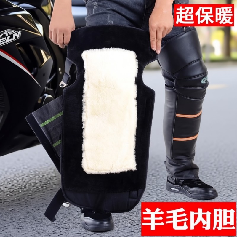 摩托车电动车护膝冬季骑车挡风护具真皮电瓶车保暖男女护腿羊毛