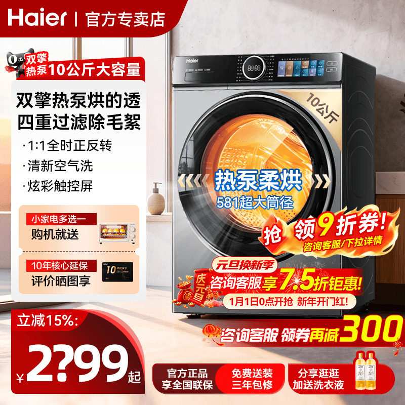 云溪4.0 海尔528烘干机双擎热泵式10公斤大容量家用77E变频干衣机