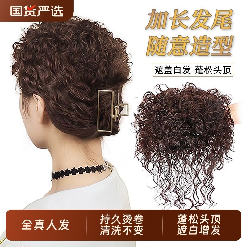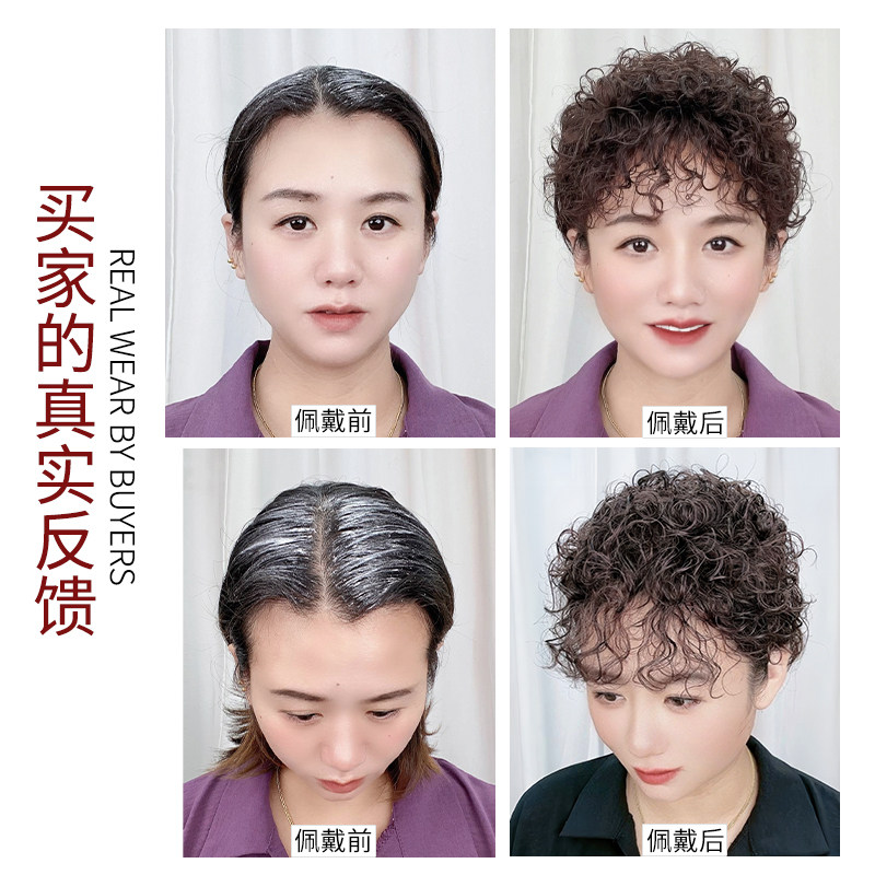 假发片女头顶轻薄卷发全真发遮白发量烫羊毛卷蓬松补发片刘海遮盖