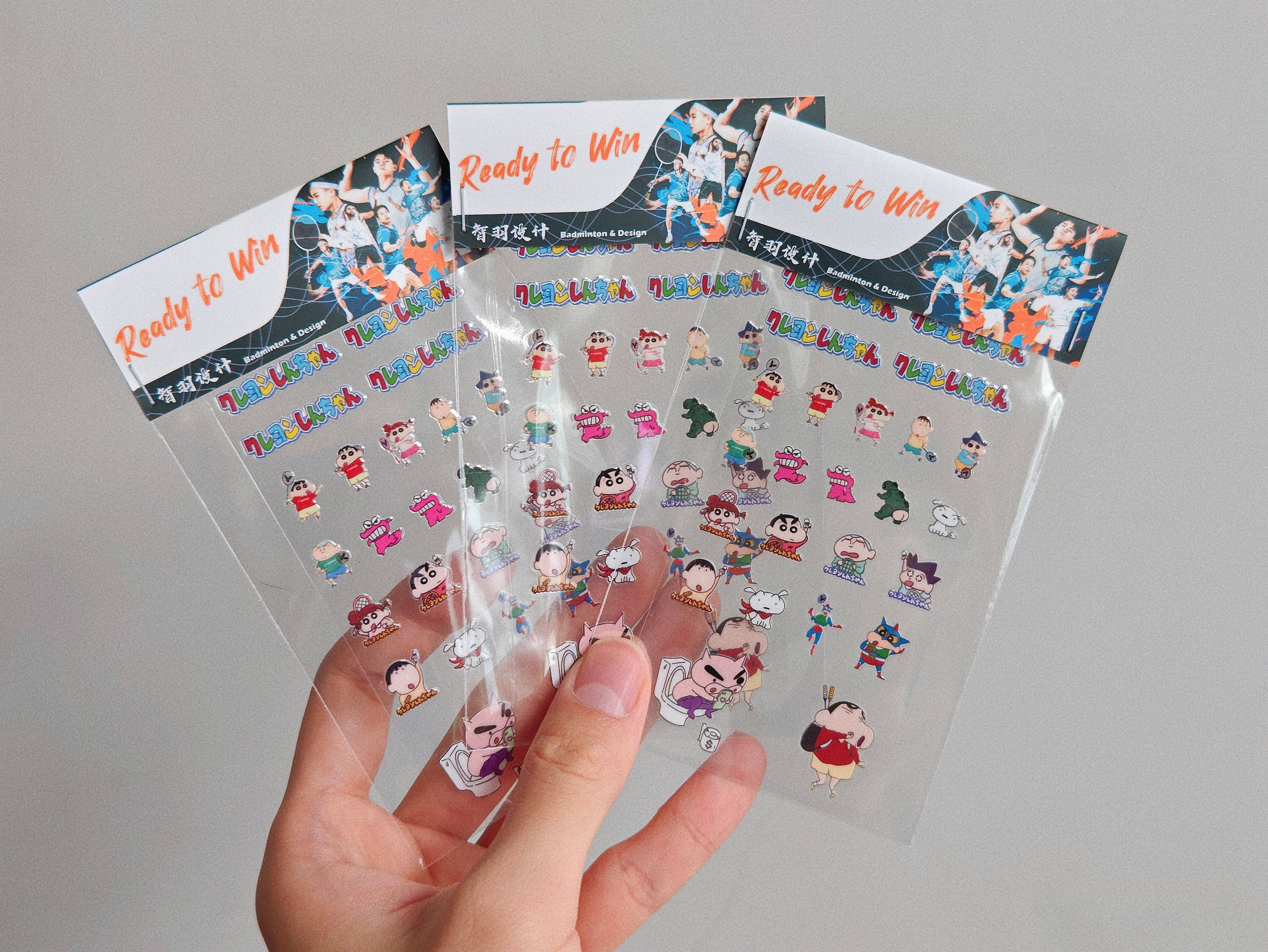 蜡笔小新羽毛球拍贴纸日系动漫卡通学生chiikawa笔杆贴纸动感超人