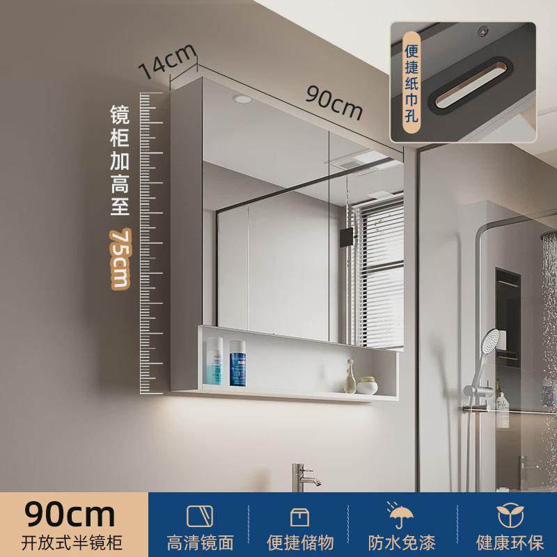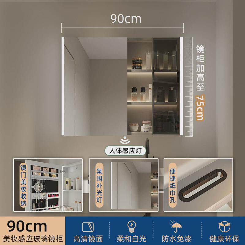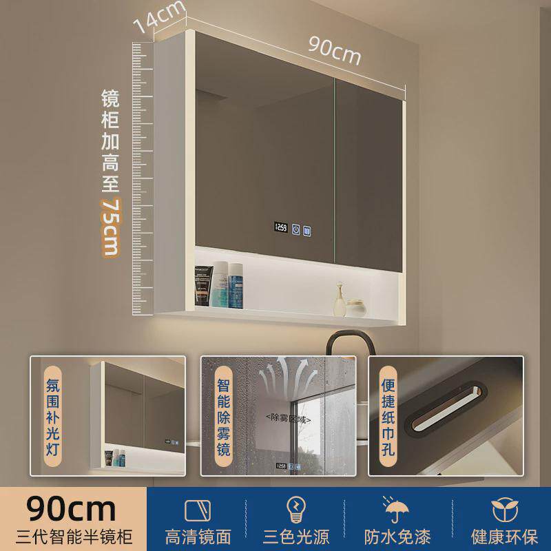 智能实木收纳浴室镜柜一体卫生间镜箱带灯厕所挂墙式镜子带置物架