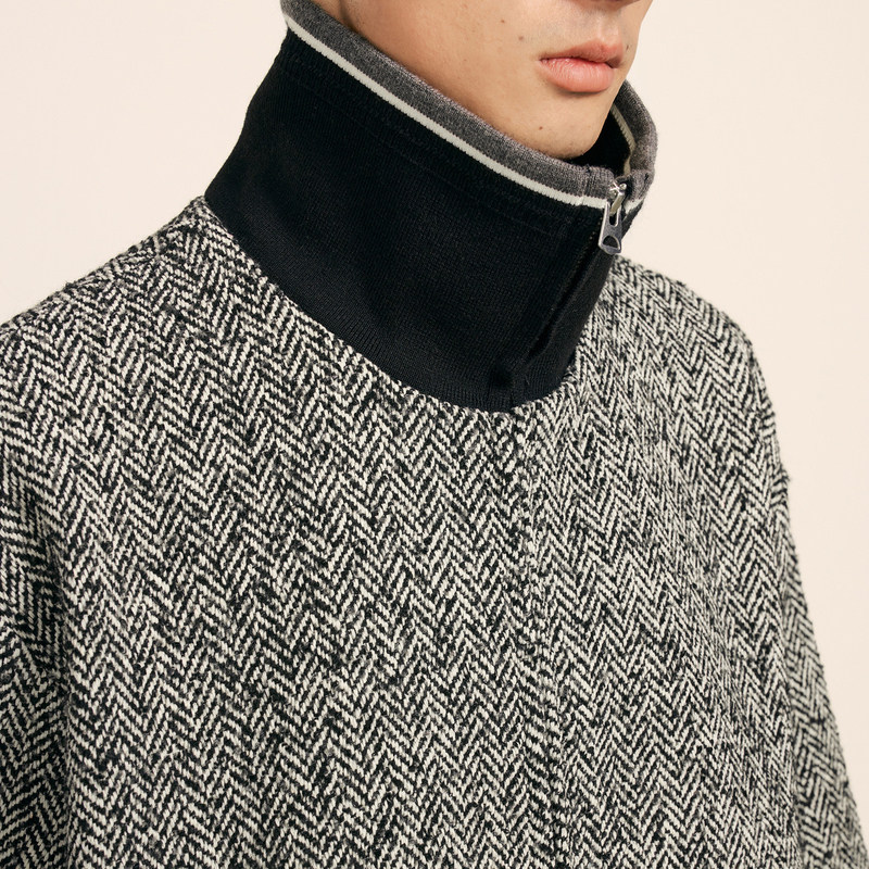 复古人字纹提花毛呢外套大部分身材都可驾驭