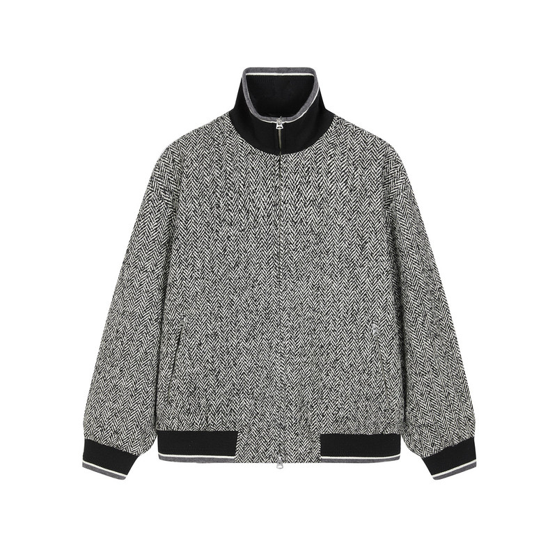 速写男装秋冬新款休闲宽松毛呢夹克短款撞色时尚潮流外套复古潮