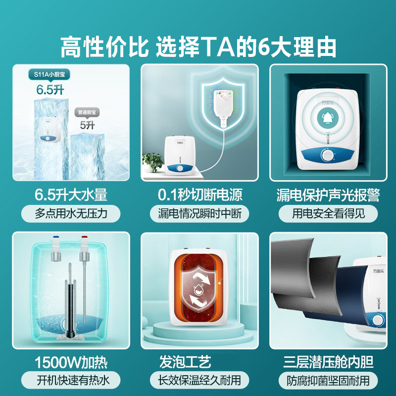 1500W速热 6.5升小厨宝 漏电保护声光报警