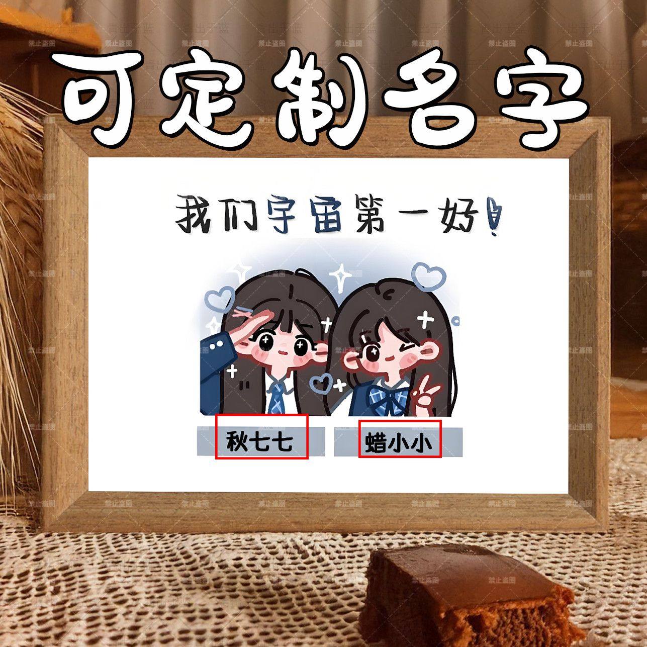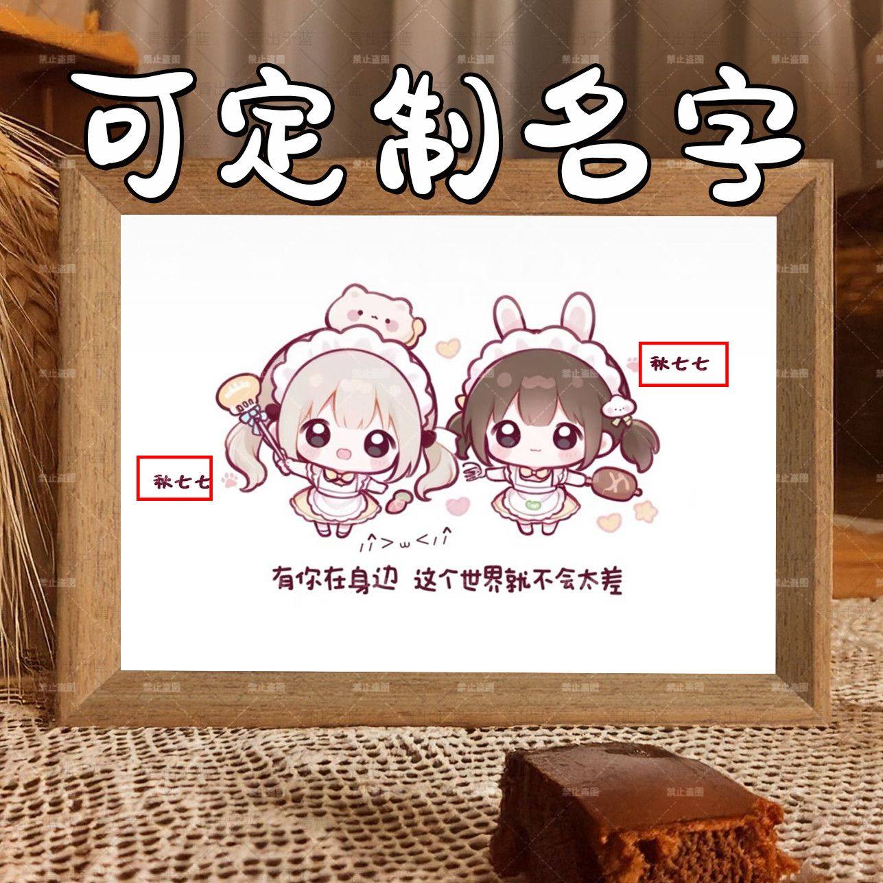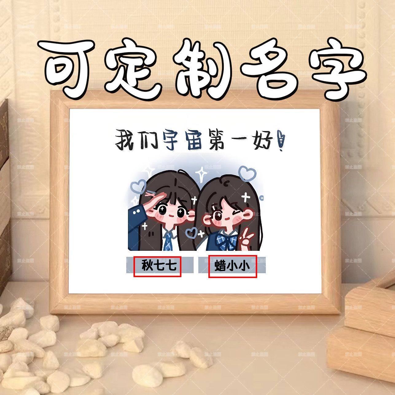 定制姓名闺蜜表白暖心语录可爱治愈木质相框摆件桌面摆台生日礼物