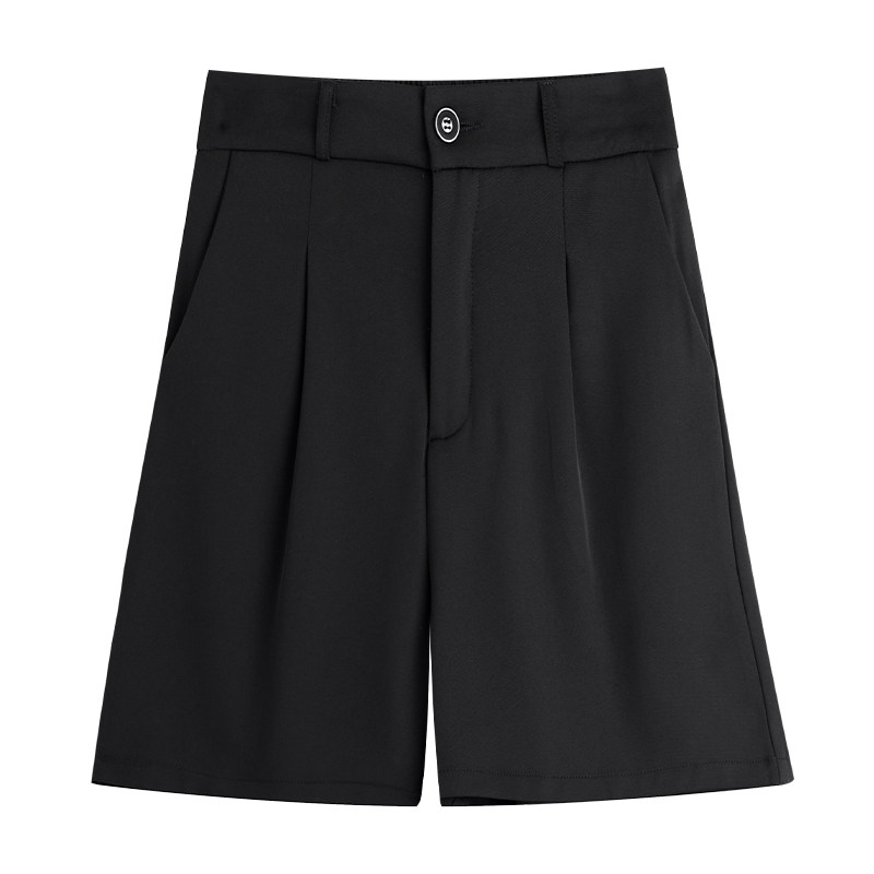 黑色西装短裤女夏季薄款2025新款小个子冰丝大码显瘦阔腿三五分裤