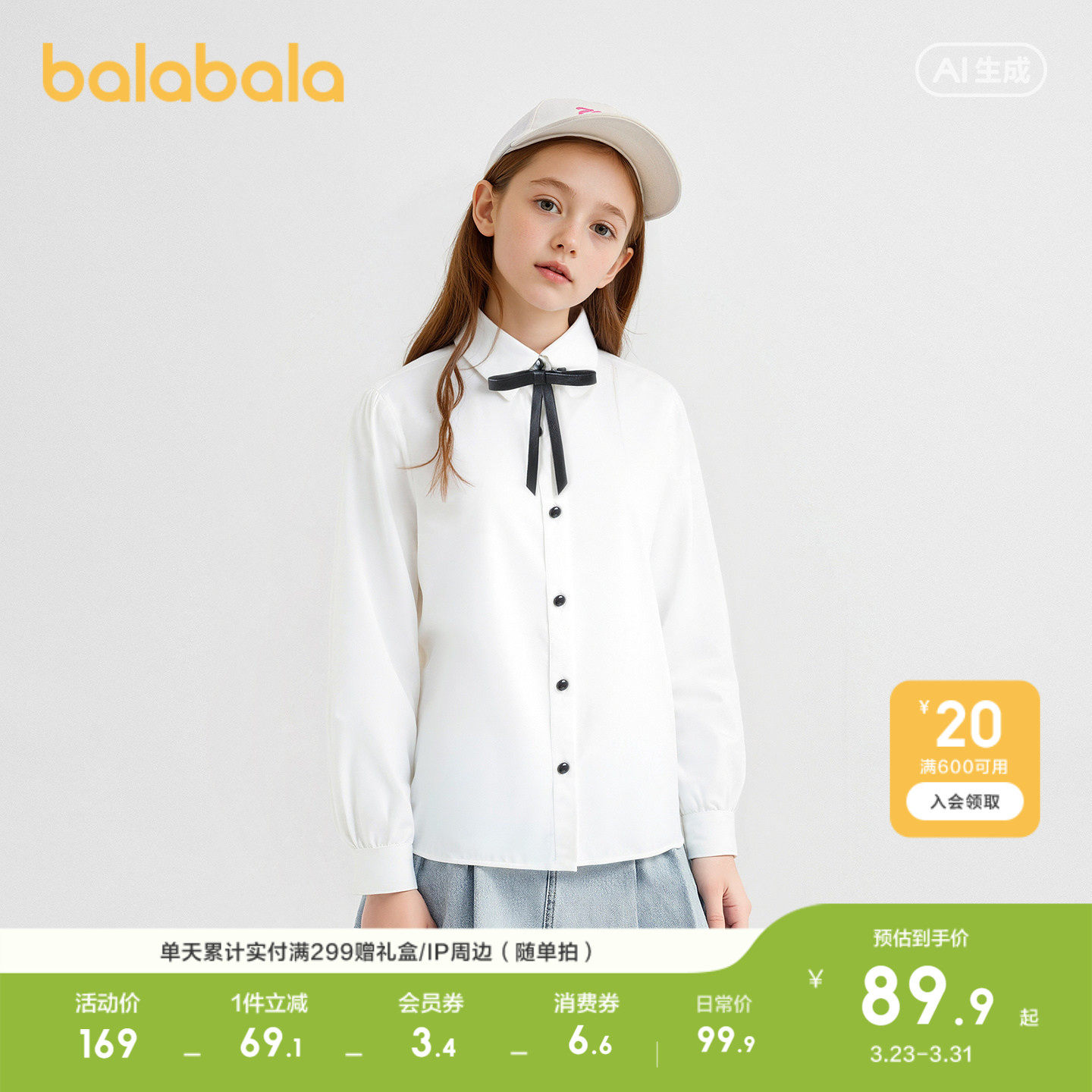 学院风女童白衬衫,赠皮质蝴蝶结发饰