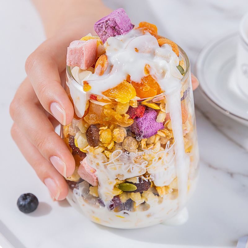 ohmyfood格兰诺拉榛果黑巧克力可可烘焙燕麦片坚果酸奶碗代餐即食
