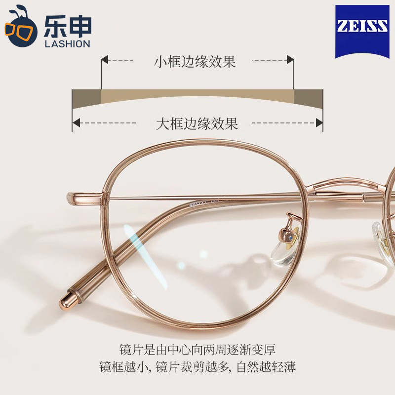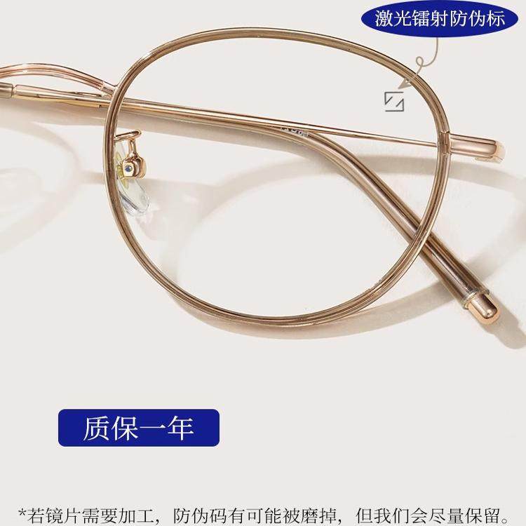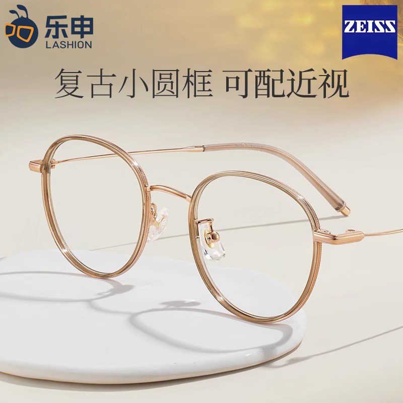 乐申超轻纯钛茶色椭圆小框近视眼镜女圆形复古圆框镜架配度数镜片