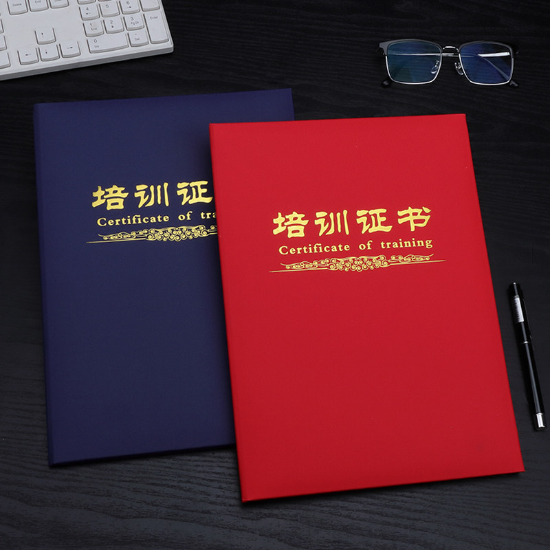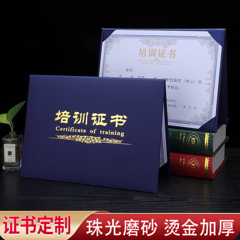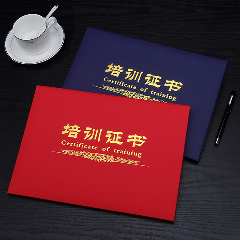 结业培训证书外壳烫金珠光a4社员公司岗位进修培训合格职业技能等级荣誉证书封套封面奖状聘书可打印内芯内页