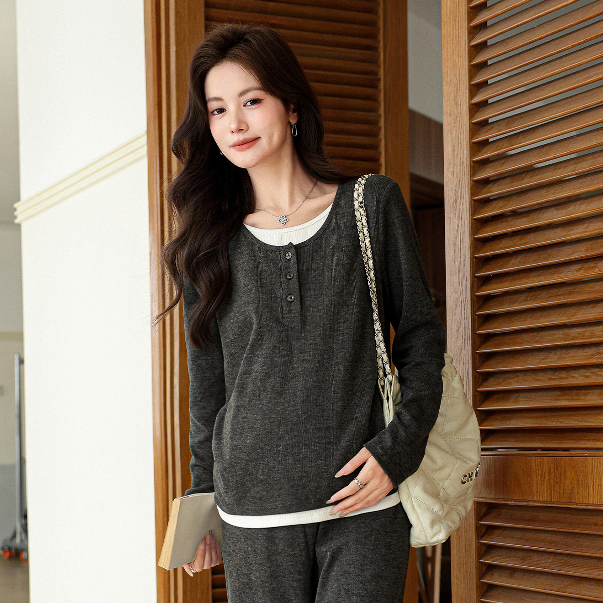婧麒孕妇装套装冬季新款慵懒假两件上衣裤子加绒秋装洋气高级冬装
