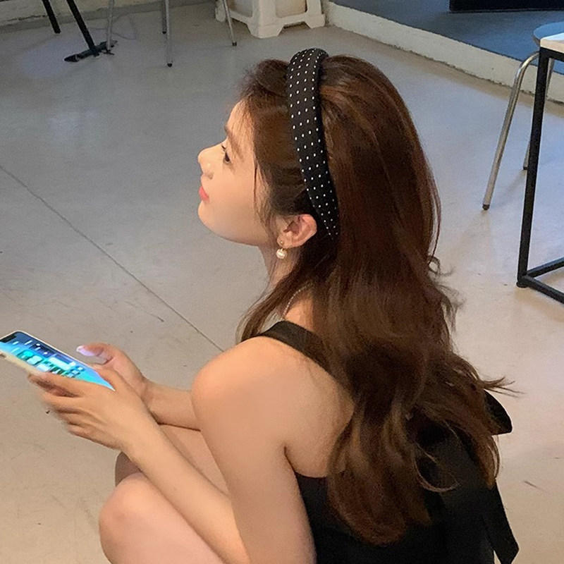 法式波点增高颅顶黑白宽边发箍女2025新款洗脸窄头箍发卡头饰发饰