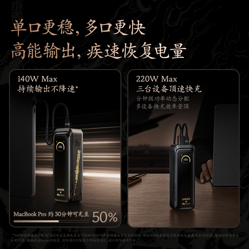 【安克黑神话悟空联名】Anker如意棒充电宝220W高功率快充20000mAh移动电源3C认证可上飞机适配苹果17笔记本