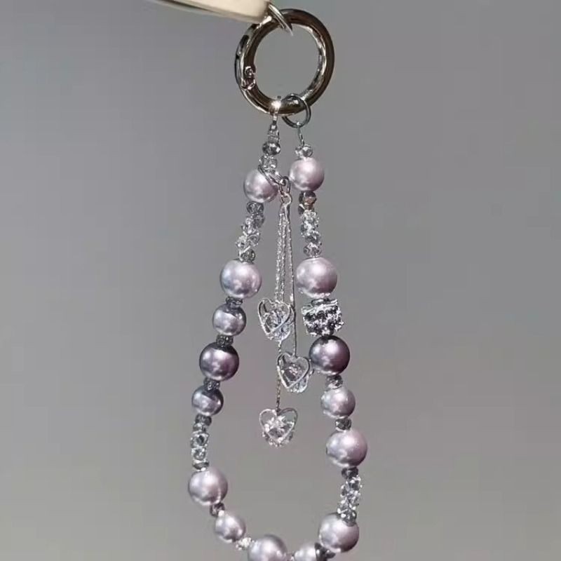 【紫珍流苏】紫色串珠手机链重工爱心手机挂链小众挂件包挂饰发饰
