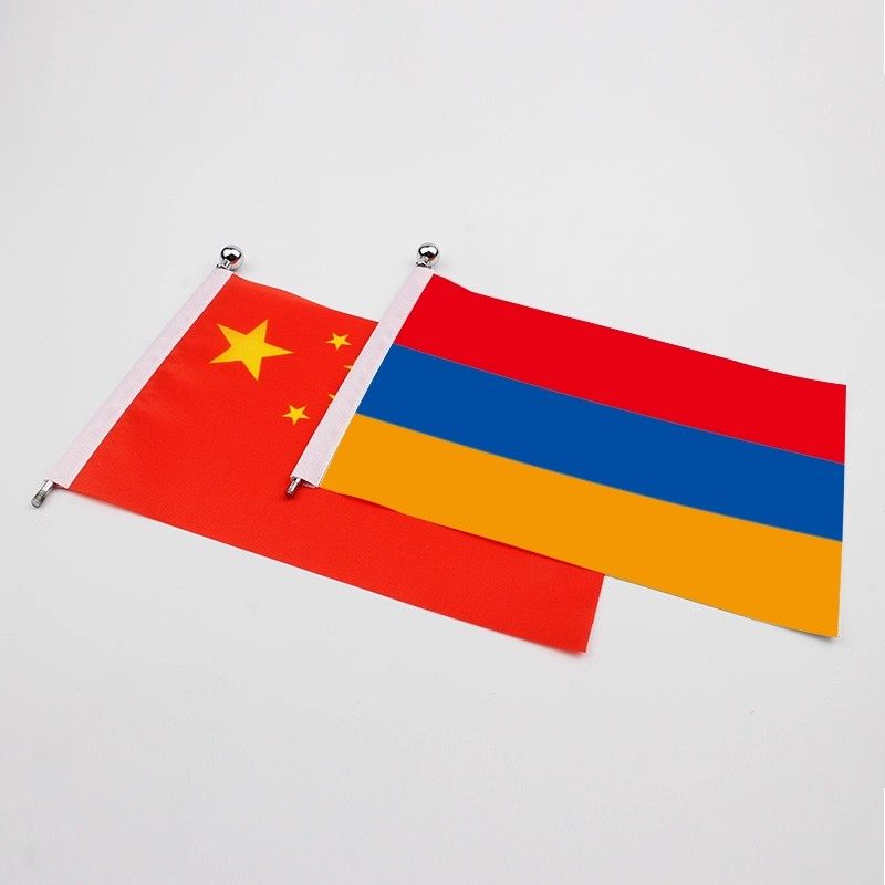 Y型中国亚美尼亚桌旗国旗摆件谈判签字约旗小红旗台旗装饰办公室