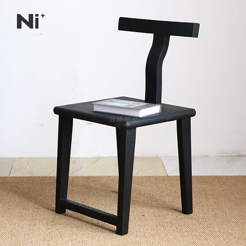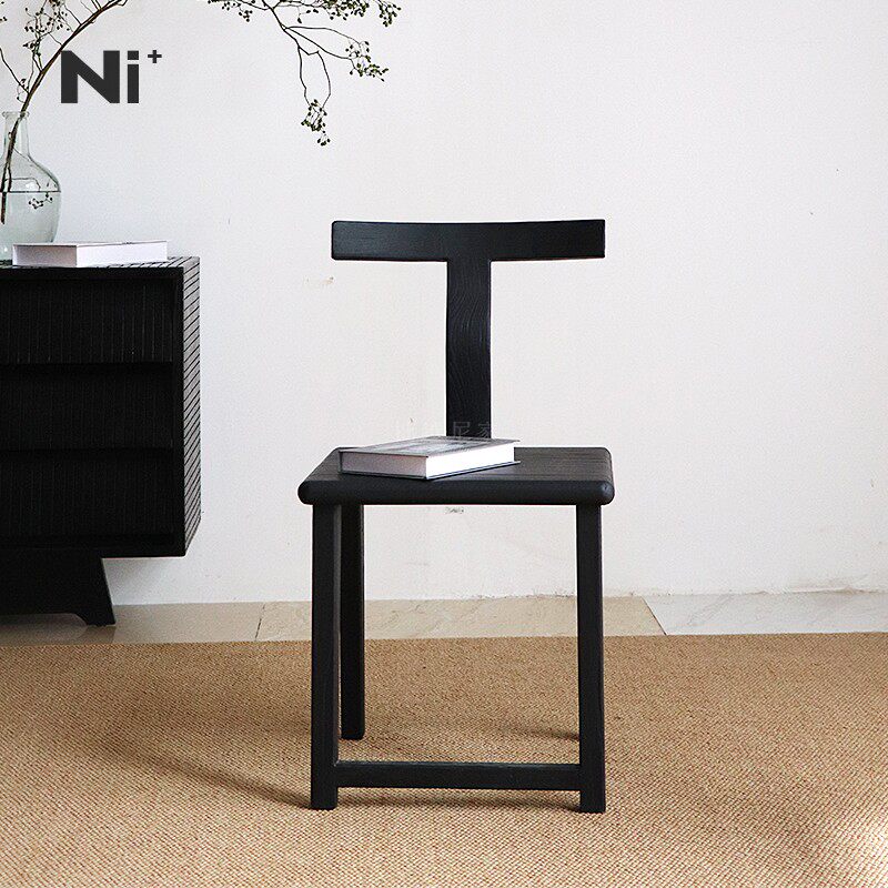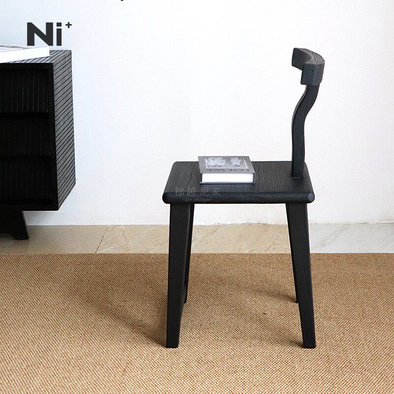 Ni尼家中古风实木餐椅家用椅子设计师款休闲椅侘寂简约阳台靠背椅