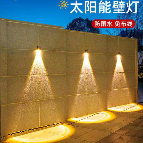 新款太阳能户外围墙壁灯庭院别墅装饰布置户外防水射灯家用洗墙灯