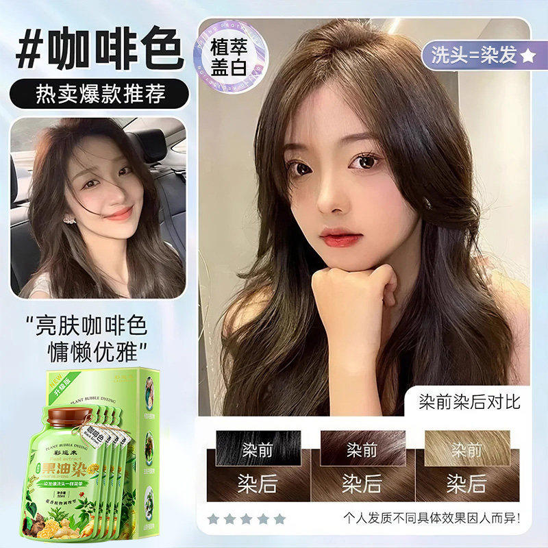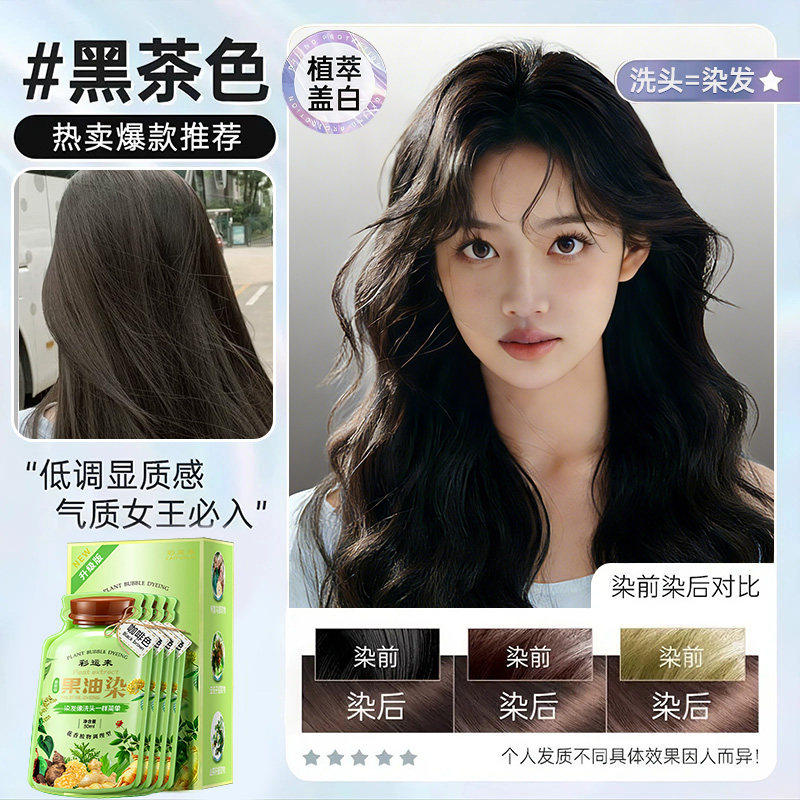 染发膏纯植物无刺激黑茶色男女专用泡泡自己染发剂正品官方旗舰店